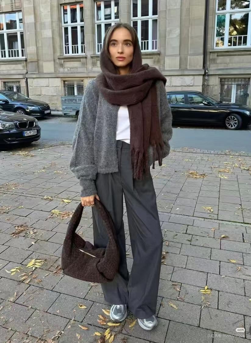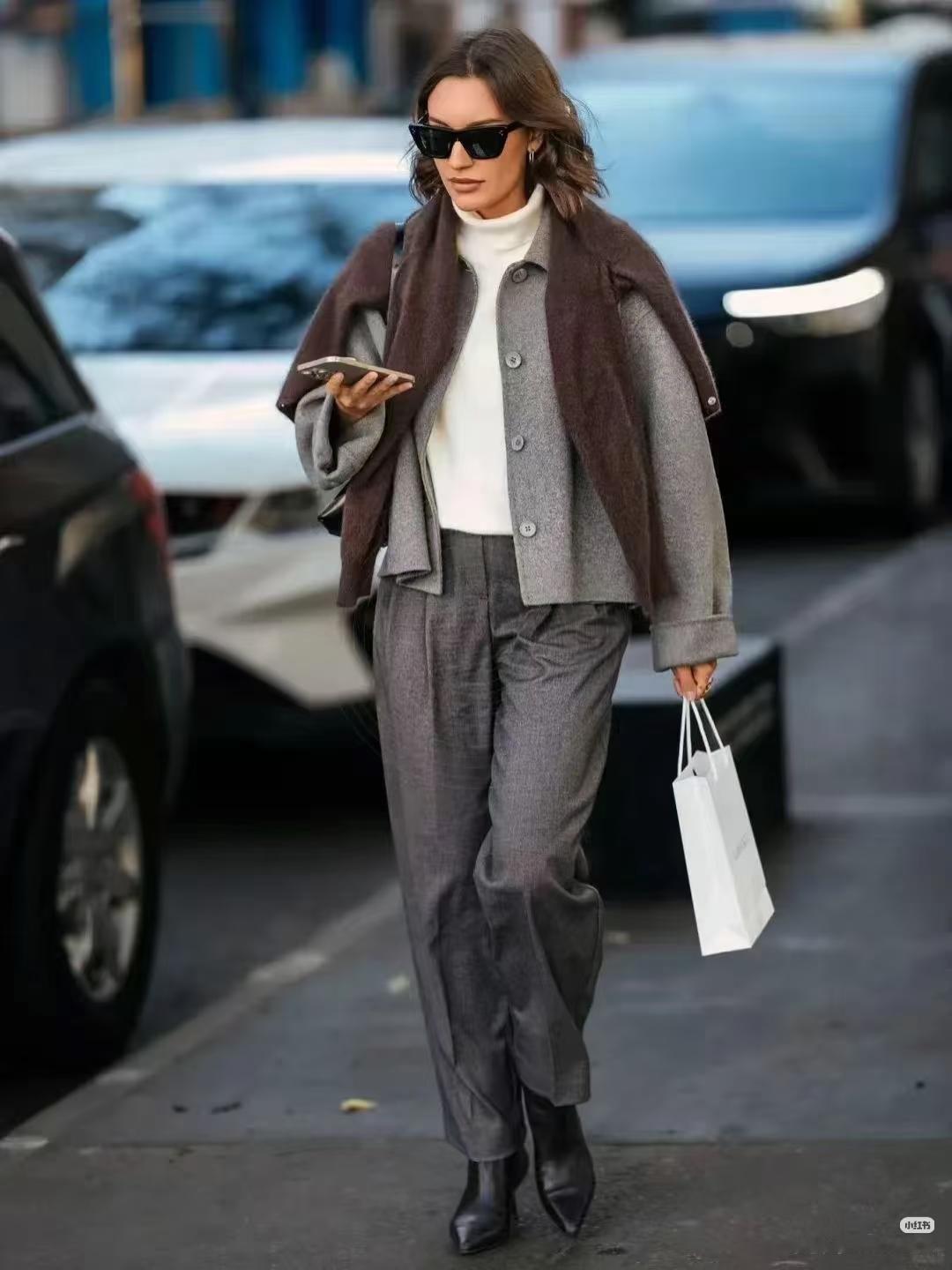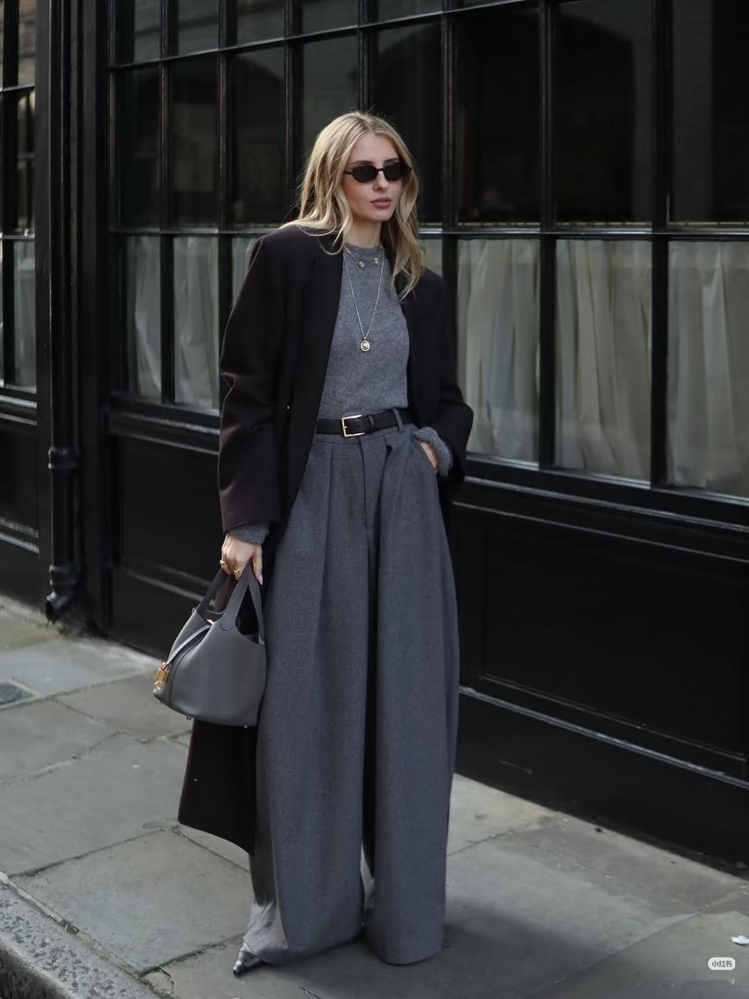 四五十岁女性冬季如何穿好灰色阔腿裤?只要掌握这些穿搭技巧,轻松穿出时髦高级的造型。 很多人觉得灰色阔腿裤过于正式,日常很难驾驭。其实只要了解这些穿搭窍门,搭配起来就比较轻松。 首先要清楚,灰色阔腿裤有不同材质的款式,比如羊毛、牛仔、西装、运动裤等,不同材质的灰色阔腿裤,所呈现出来的气质不同。 像羊毛材质和西装面料的灰色阔腿裤,就比较适合职场通勤。如果你日常以职场为主,这两种面料的裤子是最佳选择。穿大衣时,内搭高领打底衫,增加保暖和层次感。再搭配灰色羊毛阔腿裤,轻松穿出气质高级有品位造型。 要是你穿的是羊毛混纺面料的西服外套,那么选择同样材质的灰色西装阔腿裤搭配,材质风格一致 ,穿出职场女性的利落与干练气质。 要是你平时以休闲场合为主,那么灰色牛仔阔腿裤和灰色运动阔腿裤就是极佳选择。日常搭配短羽绒服或短外套,轻松穿出随便自在又舒适造型。 在选择阔腿裤时,可以根据所处场合选择适合的款式,就不会存在难以驾驭的情况。值得注意的是,灰色阔腿裤有窄版和宽松版区别,普通身材建议选择窄版灰色阔腿裤,遮肉显瘦又显身高。如果属于胯宽腿粗身材,宽松版型的阔腿裤遮肉效果更好。 在搭配灰色阔腿裤时,选择基础色上衣为主,比如黑、白、灰、卡其等颜色,与灰色阔腿裤搭配,简约耐看不出错。值得一提的是,选择灰色同色系穿搭时,裤子与上衣之间,尽量选择灰色系不同深浅的单品组合,穿出和谐高级有层次感造型。避免全身深灰色搭配,容易穿出沉闷和老气感。 只要根据场合选对适合的灰色阔腿裤,搭配时选择基础色组合,避免全身深灰色搭配,我们四五十岁女性,冬季也能穿好灰色阔腿裤。