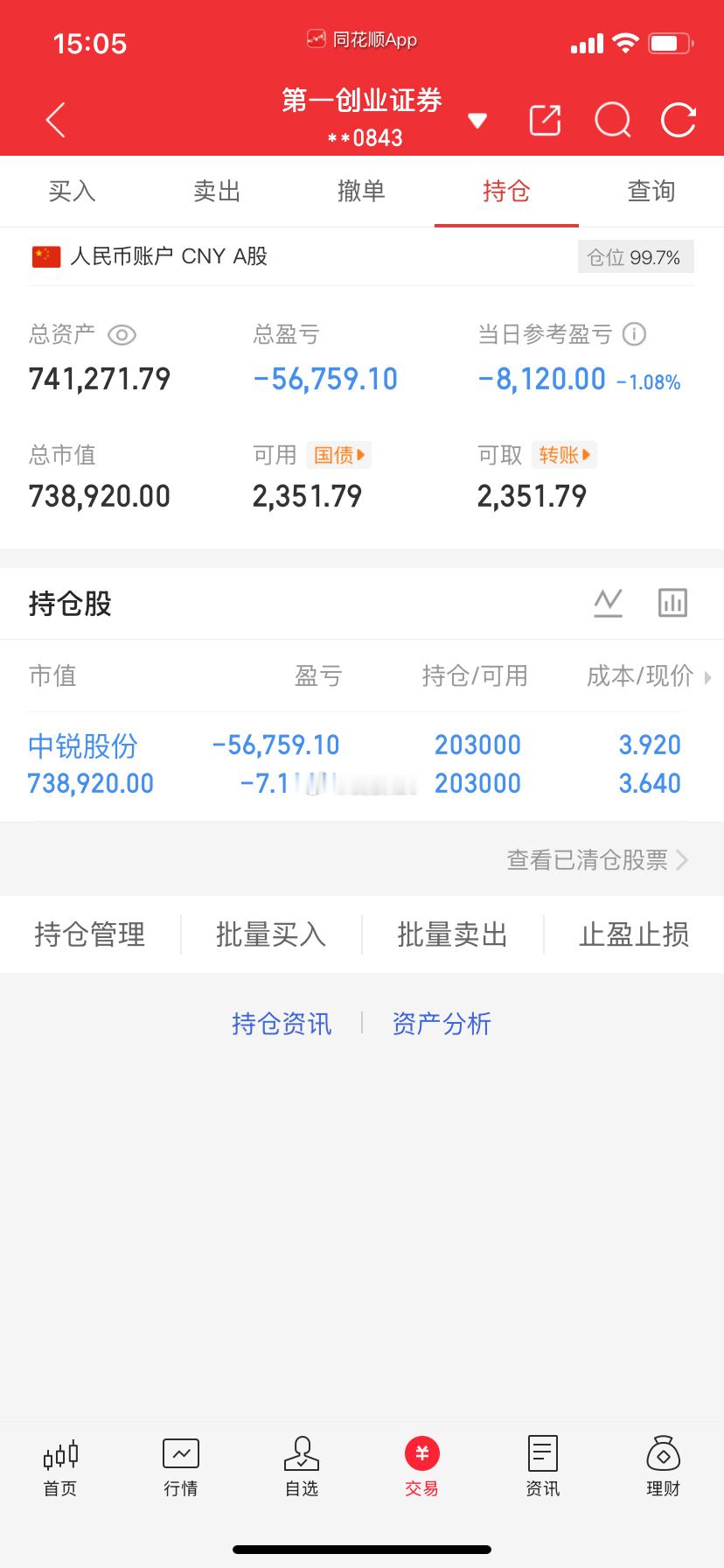 爱股程全职炒股日记40w本金挑战一年翻5倍,第( 86 )天!总资产:74w当日参考盈亏:-8120目前持有:中锐股*特别声明:本文仅是个人观点及操作不构成投资建议,仅供参考!