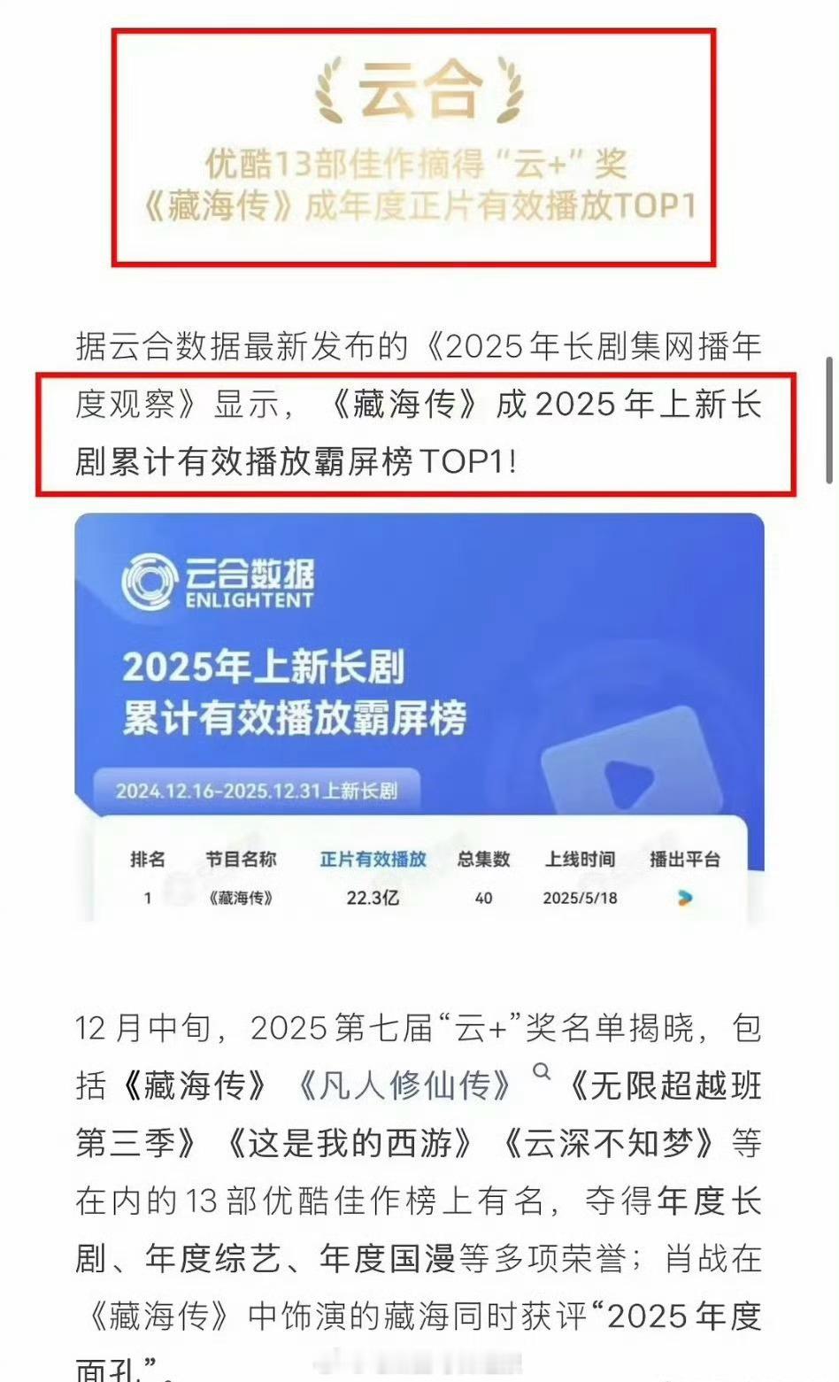 👖发布2025年终总结,提到肖战《藏海传》成绩斐然,成毅的《长安二十四计》没有算在内吗?