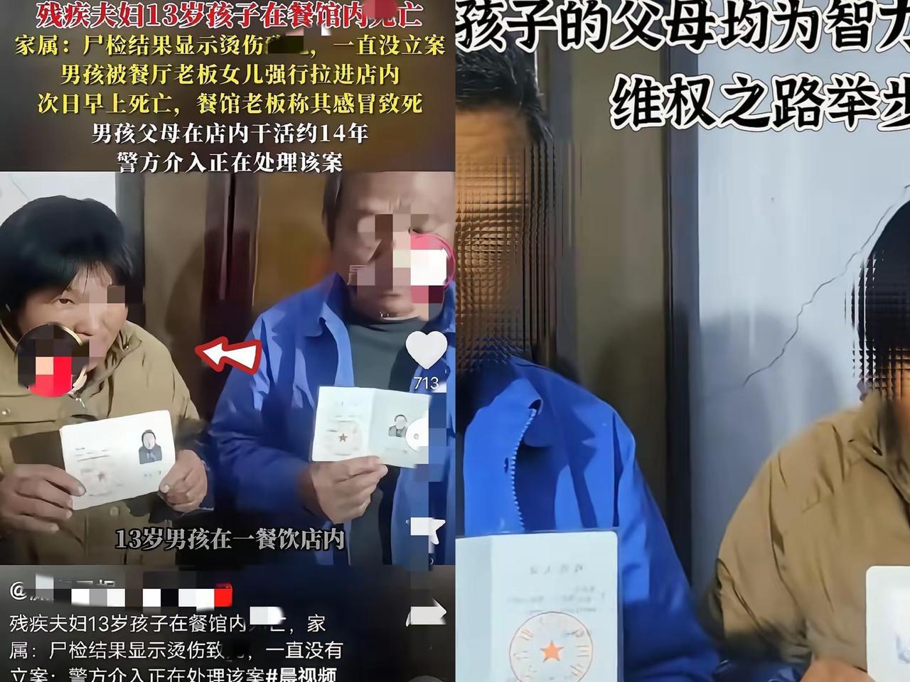 家人们,广东汕头这事儿真的越扒越让人寒心!13岁孩子去接爸妈下班,居然莫名其妙死在餐馆厨房角落,光看尸检报告里“20%体表烫伤”,我鸡皮疙瘩都起来了——这得受多大罪啊! 更让人气愤的是,孩子爸妈都是智力残疾,在店里干了14年苦力,老板居然张口就说“感冒死的”,还藏着监控不让看。啥感冒能把后背、屁股烫掉一层皮?这不就是明着欺负老实人不会争辩吗! 现在虽说分局和残联介入了,但对这对连话都说不利索的夫妻来说,唯一的指望没了,天早就塌了。他们往后的日子咋过,想都不敢想。大家觉得这事儿后续该咋给这家人一个公道?评论区都说说!