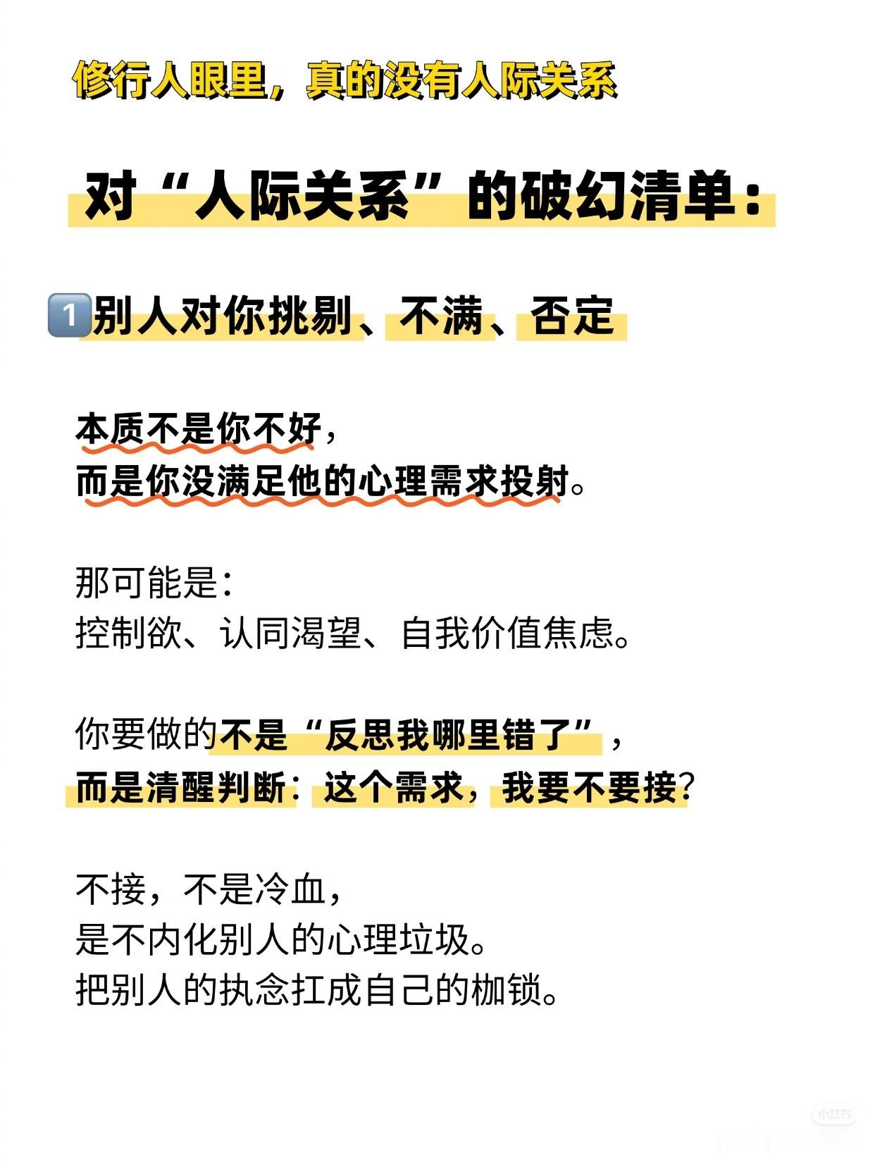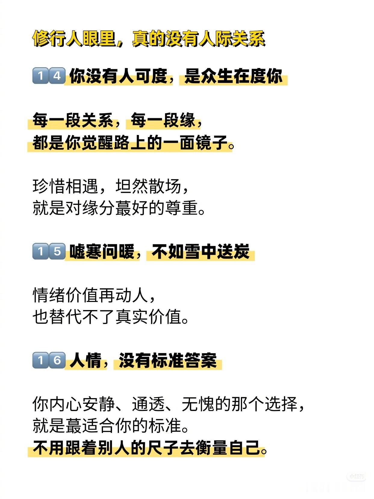 修行人眼里,真没有人际关系。“允许一切如其所是”“不用跟着别人的尺子去衡量自己”