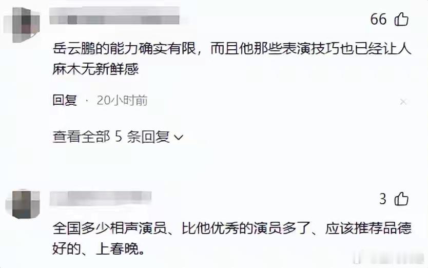 春晚彩排的明星岳云鹏前几天苏州跨年还说不去春晚了,“去一次被骂半年,不去了”,结果光速打脸哈哈哈哈!新的春晚彩排名单有他!从2014年初登春晚到现在,岳云鹏8次登上春晚了,有人爱有人怼,吐槽他相声不好笑的、调侃烧鸡名场面的大有人在,但《年三十的歌》和《最亲的人》也挺火啊,怎么现在大家都不想让他去了?春晚彩排的明星