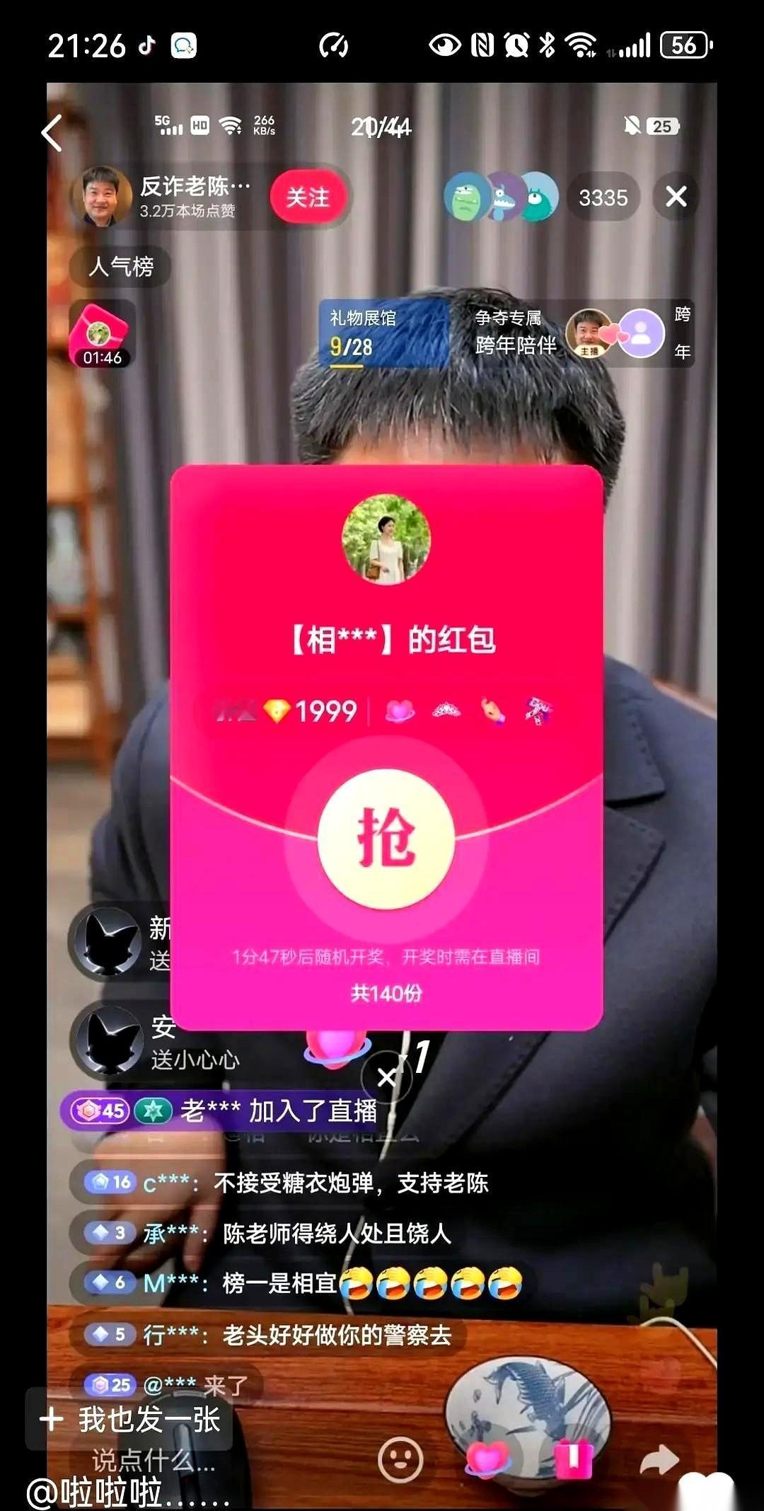 两万块,pia叽一下,直接砸在了反诈老陈的脸上。 我隔着屏幕都替他尴尬,脚指头抠出三室一厅。 一个天天喊着“家人们别刷礼物、捂好钱包”的老实人,被一个知识区女博士用七个嘉年华(最贵的礼物)当众“打脸”。 老陈的脸,瞬间就绿了。 他想关打赏,手忙脚乱。想找台阶,结结巴巴。最后憋出一句:这钱我全捐了! 语气硬得像块石头,全是委屈和不甘。 但砸钱的相宜博士呢? 从头到尾,一句话没说。 太狠了。 这哪是刷礼物,这分明是高手过招。 她用两万块,买了一场全民围观的、关于“清高”与“世故”的社会实验的独家冠名权。 她什么都不用说,流量、话题、争议,自动就往她口袋里钻。 你看,体面人撕开世界的真相时,用的都不是刀,是钱,是资源,是你看都看不懂的规则。 老陈输了吗?他守住了自己的底线,没输。 相宜赢了吗?她用最少的成本,撬动了最大的关注,没输。 那到底谁尴尬了? 是那些还以为网络世界是“真空”、是“净土”的我们啊。 这个世界,从来就没有免费的烟花。 每一分钱,每一次点击,背后都明码标价,写着它想换走的东西。