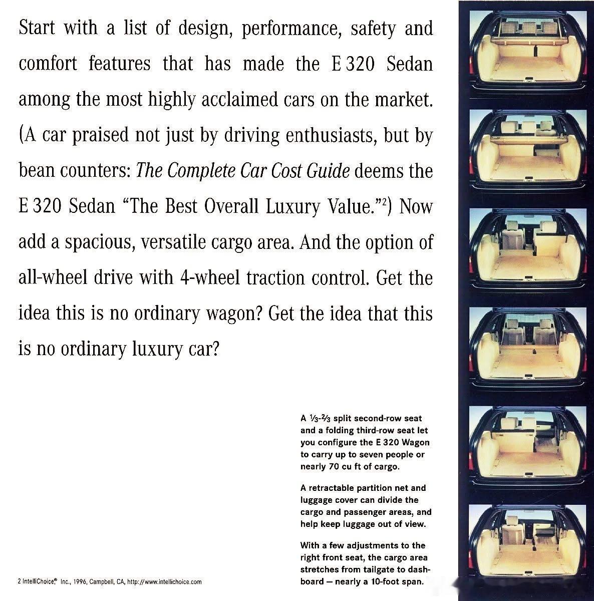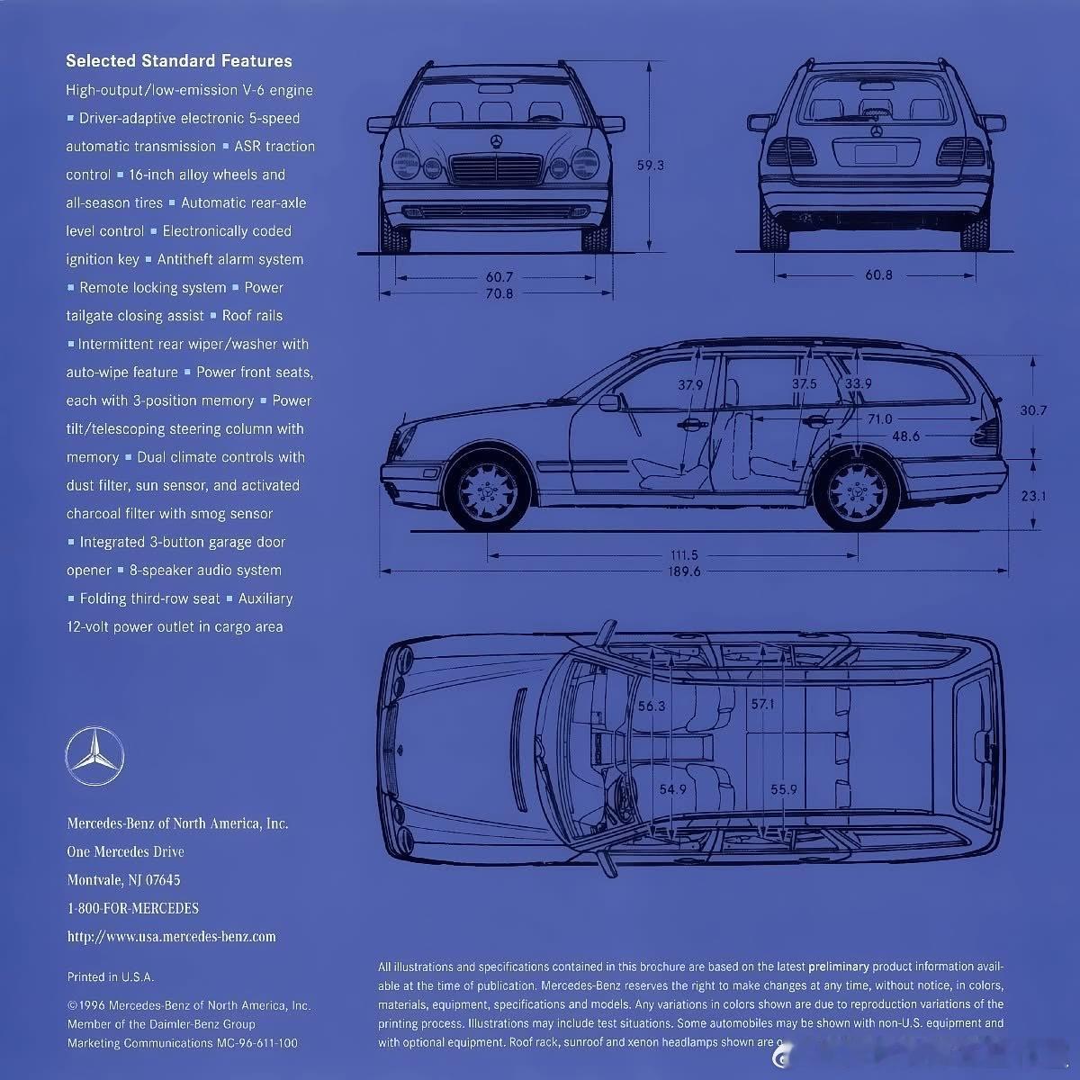 考古贴:1997年的奔驰S210 E-Class是奔驰E级的第二代车型中的旅行车版本,S210是旅行车(Station Wagon)的内部代号,奔驰S210 E-Class的历史可以追溯到1995年,它是作为W124的后继车型推出的。1999年10月,该车进行了改款,外观设计有所变化,车内约有1800处进行了改良。S210的生产一直持续到2002年,之后被W211车型所取代。旅行车 它是世界上首款采用车门内置式侧面安全气囊的汽车,还配备了ASR(驱动防滑系统)和ESP(电子稳定程序)等,安全性大幅提升。奔驰经典老车历史奔驰E级