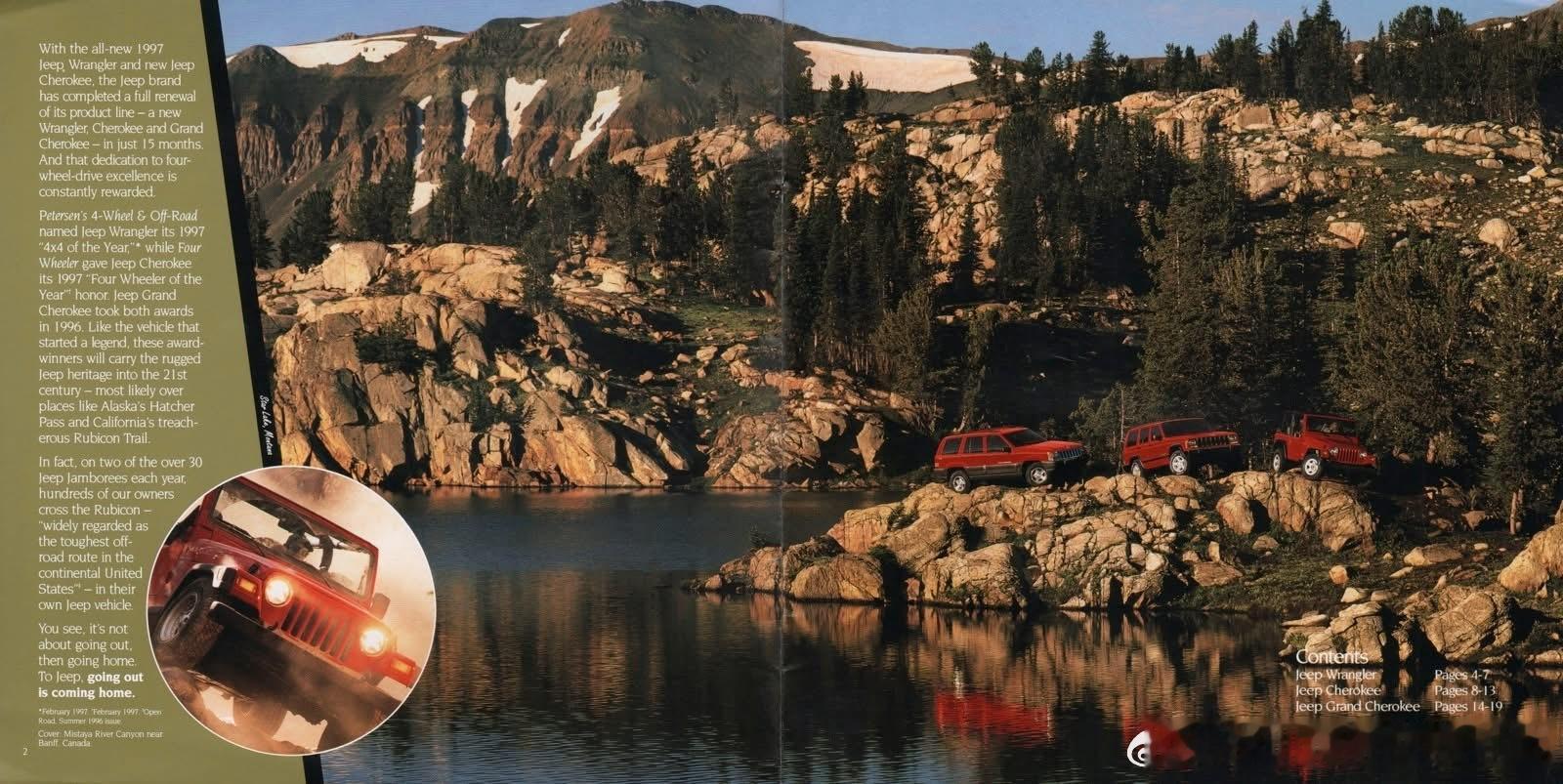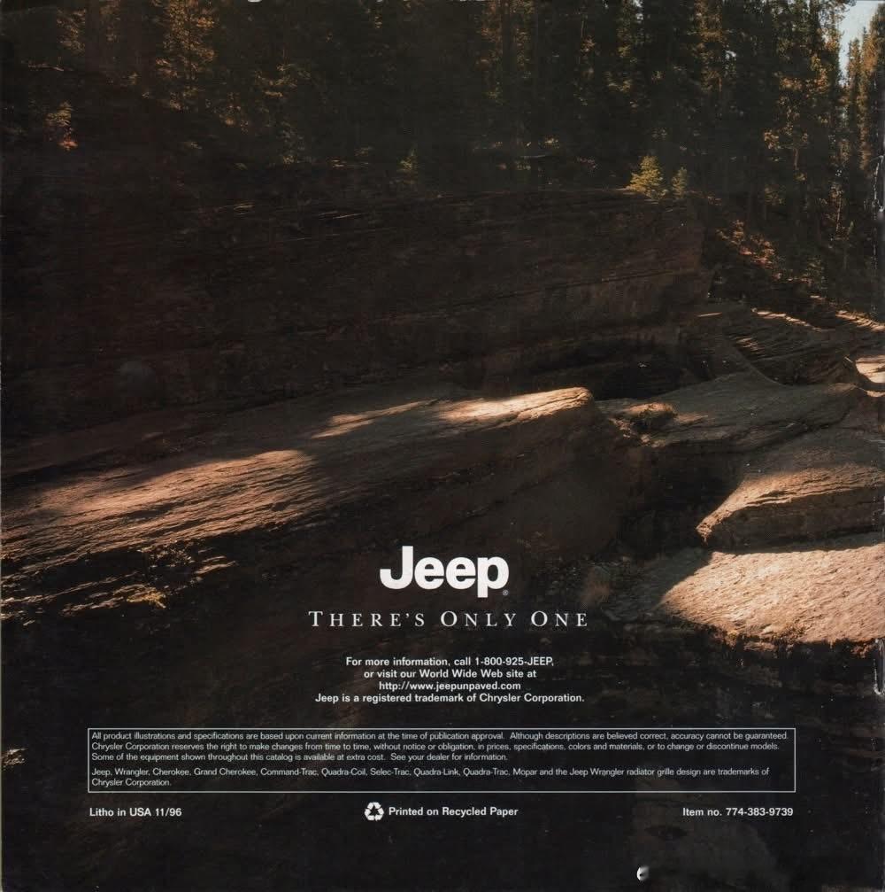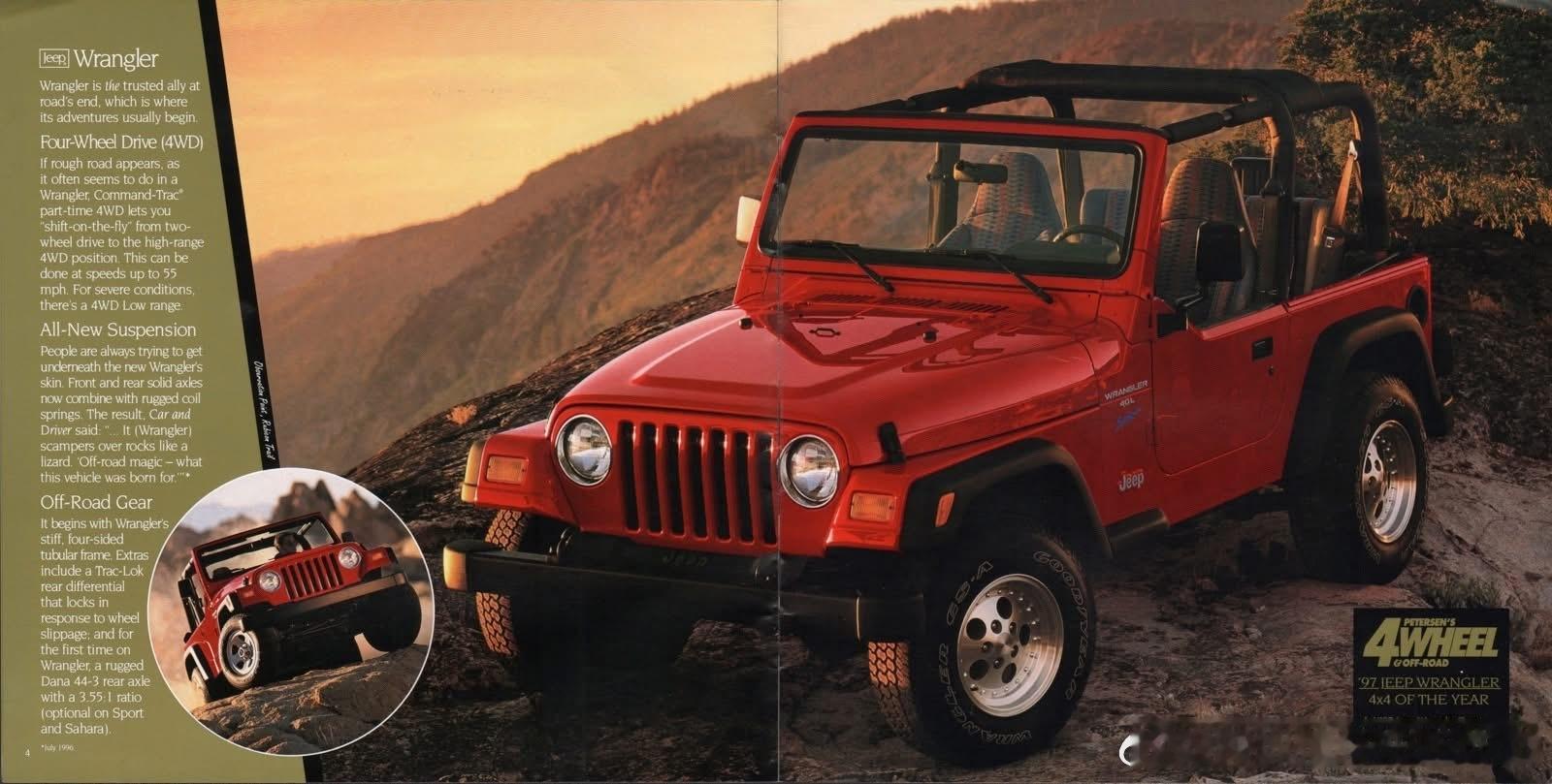 1997 Jeep车型销售型录。1997年Jeep全球销量约50万辆,北美是核心市场,海外以切诺基最畅销,中国以北京吉普切诺基为主,年销量约数万辆,是中国SUV市场标杆。