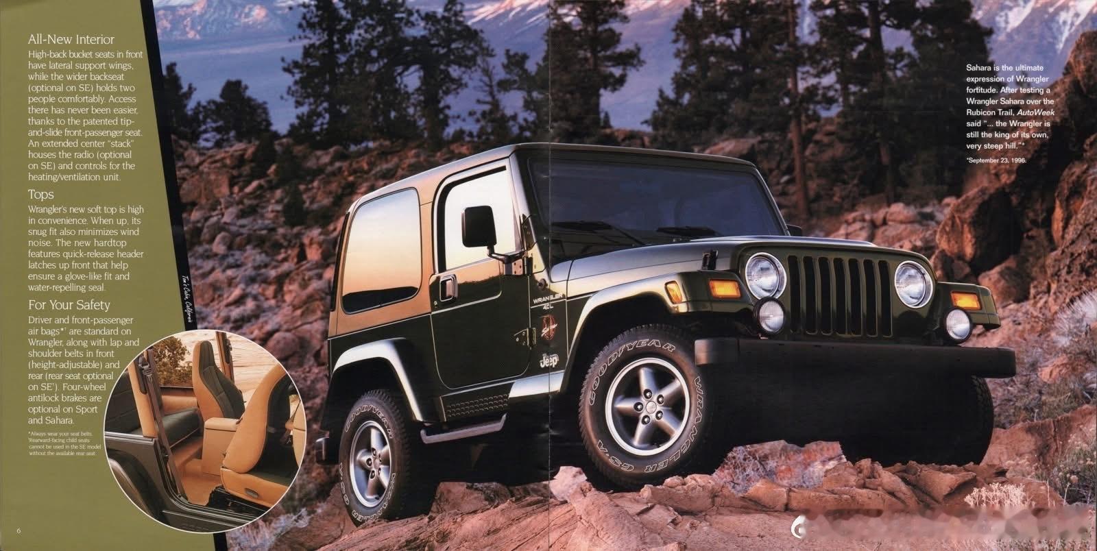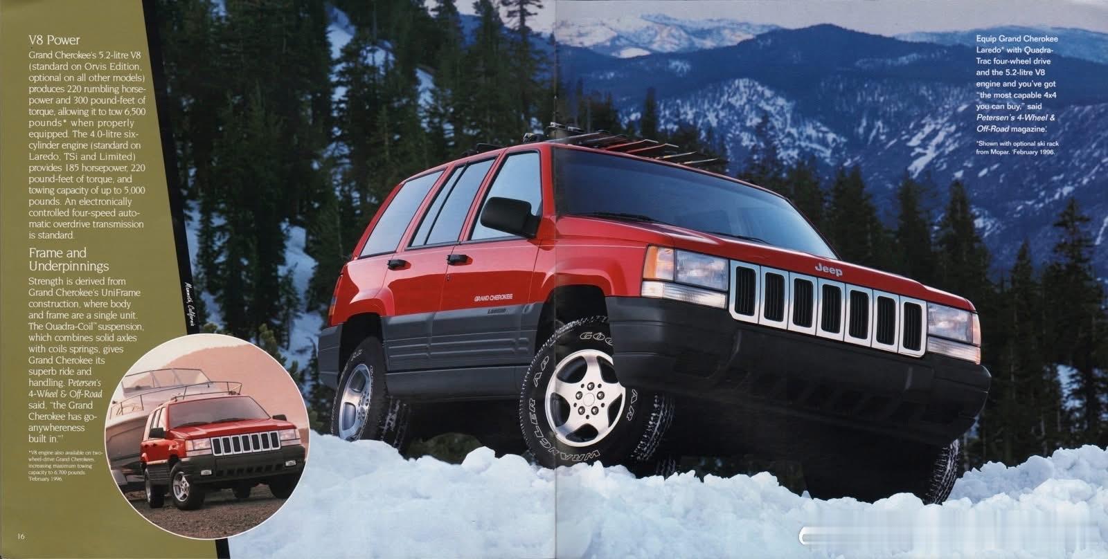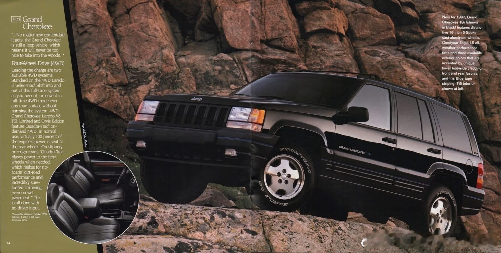 1997 Jeep车型销售型录。1997年Jeep全球销量约50万辆,北美是核心市场,海外以切诺基最畅销,中国以北京吉普切诺基为主,年销量约数万辆,是中国SUV市场标杆。