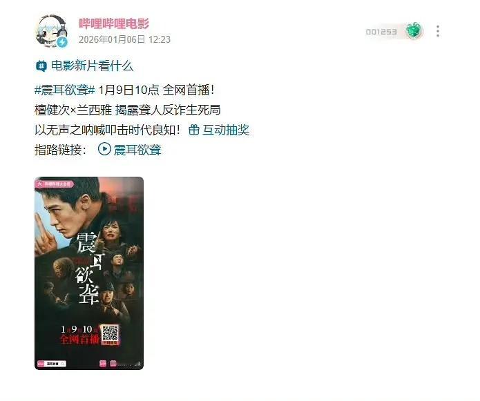 檀健次新电影《震耳欲聋》1月9日 全平台上映