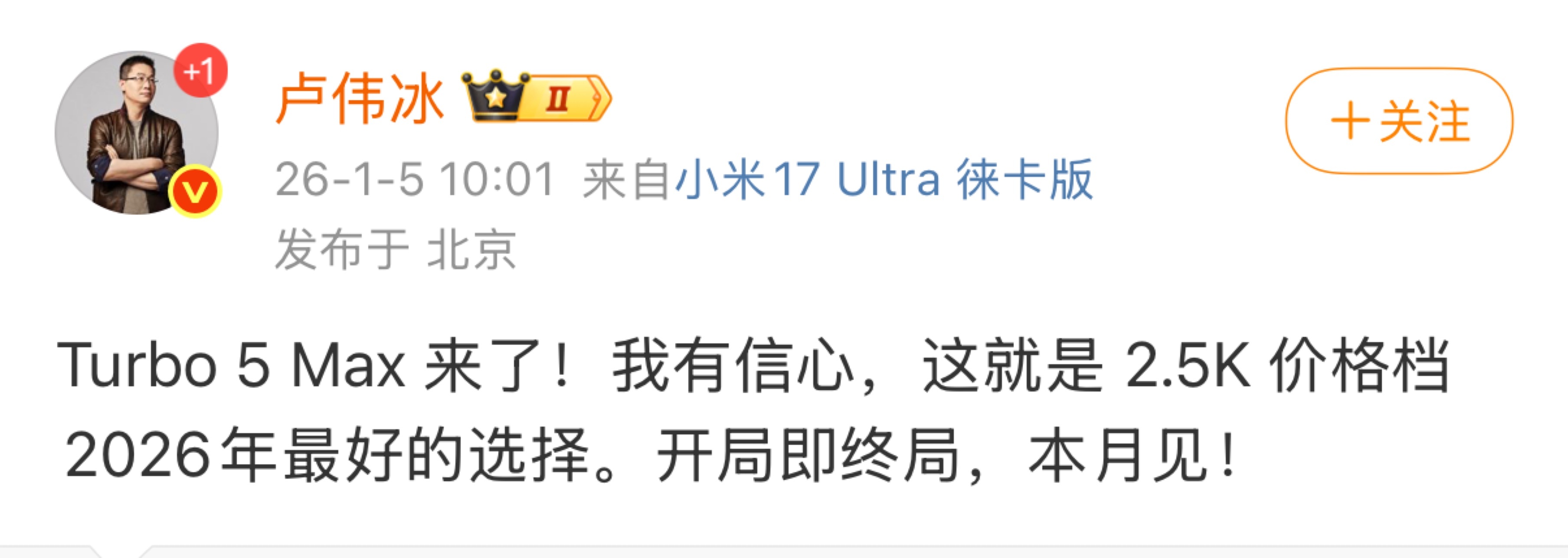 REDMI Turbo 5 Max 官宣将于本月发布,官方海报中 MAX 的倒影是 WIN卢伟冰说有信心让 Turbo 5 Max 成为 2.5K 价位段的最佳选择大家对这款手机有什么期待吗?