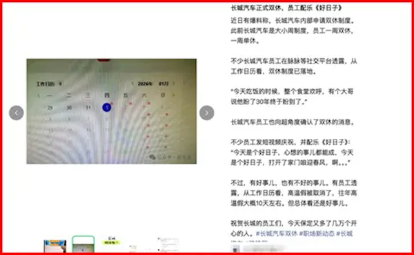 长城汽车正式取消大小周实行双休,员工配乐《好日子》庆祝