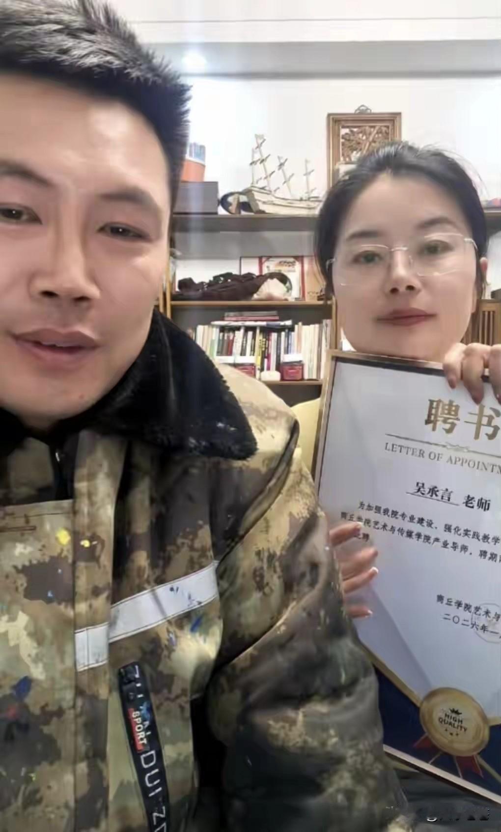 39岁的吴承言直播官宣喜讯,笑到合不拢嘴。 商丘师范、商丘学院、商丘工学院,三所高校都发了聘书。 这个河南商丘吴营村的农民画家,终于熬出头了。 他五考央美落榜,却从没放下手里的画笔 。 后来扎根乡村,踩着脚手架为乡亲画墙绘,一画就是几十年 。 去年他画的18米天安门墙绘火出圈,圆了老人“看天安门”的梦 。 这面墙成了村里地标,单日游客破10万,带火乡村旅游 。 他逻辑清晰、会教画画,之前还在培训机构当过老师。 高校看中他的实战经验,让他教墙绘等实践课。 这事让大家明白,文凭不等于能力,热爱和坚持最值钱。 吴承言没飘,说会好好备课,把乡村艺术带进课堂。 他的故事告诉我们:是金子,在哪都会发光。 别嘲笑追梦人,坚持下去,你也能等到自己的高光时刻! 农民画家吴承言 吴承言