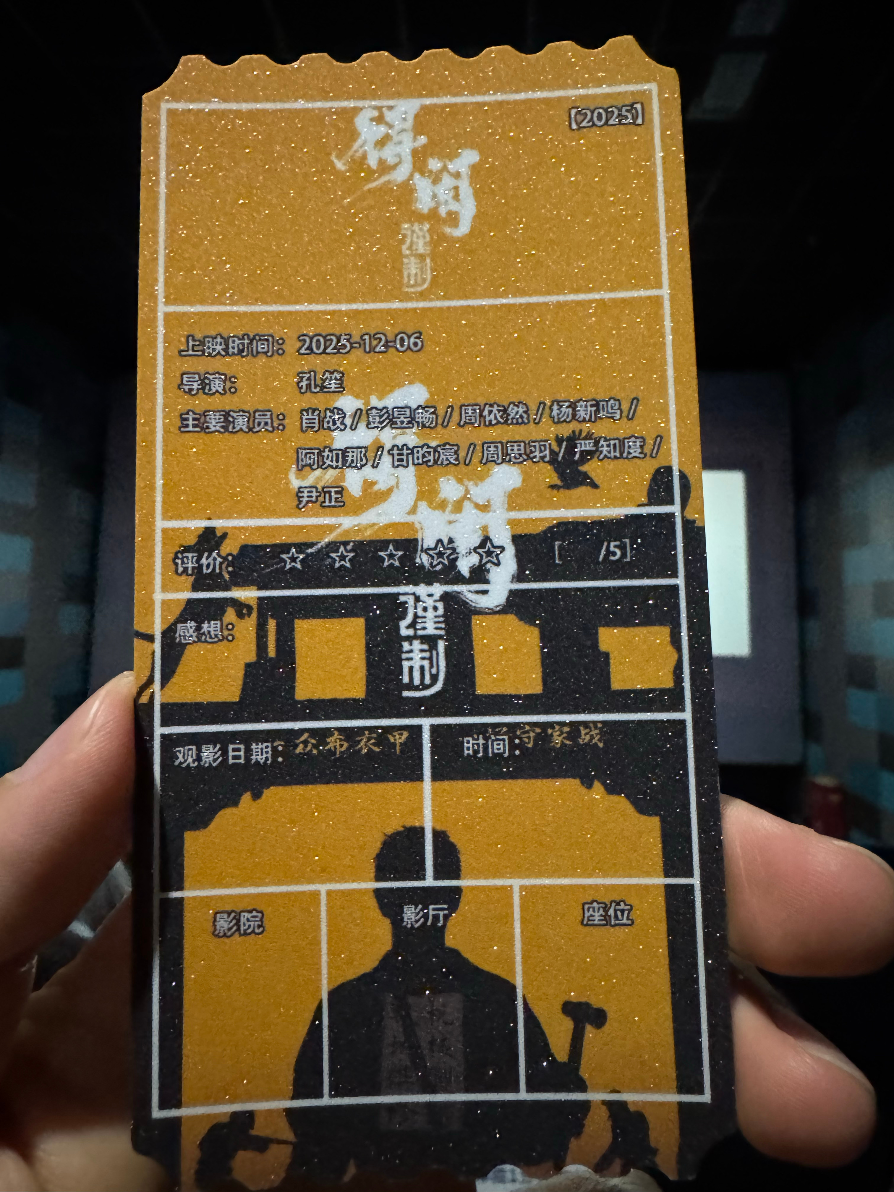 又解锁了北京一个从没来过的影院,就在北京西站边上,虽然这个地段没啥人看电影,但是进来发现设备挺齐全的,影院还给观众准备了自制的纪念票根,我挑了张比较喜欢的《得闲谨制》的,拿到手挺有质感跨年电影愿 北京·西牛影城(西客站店)