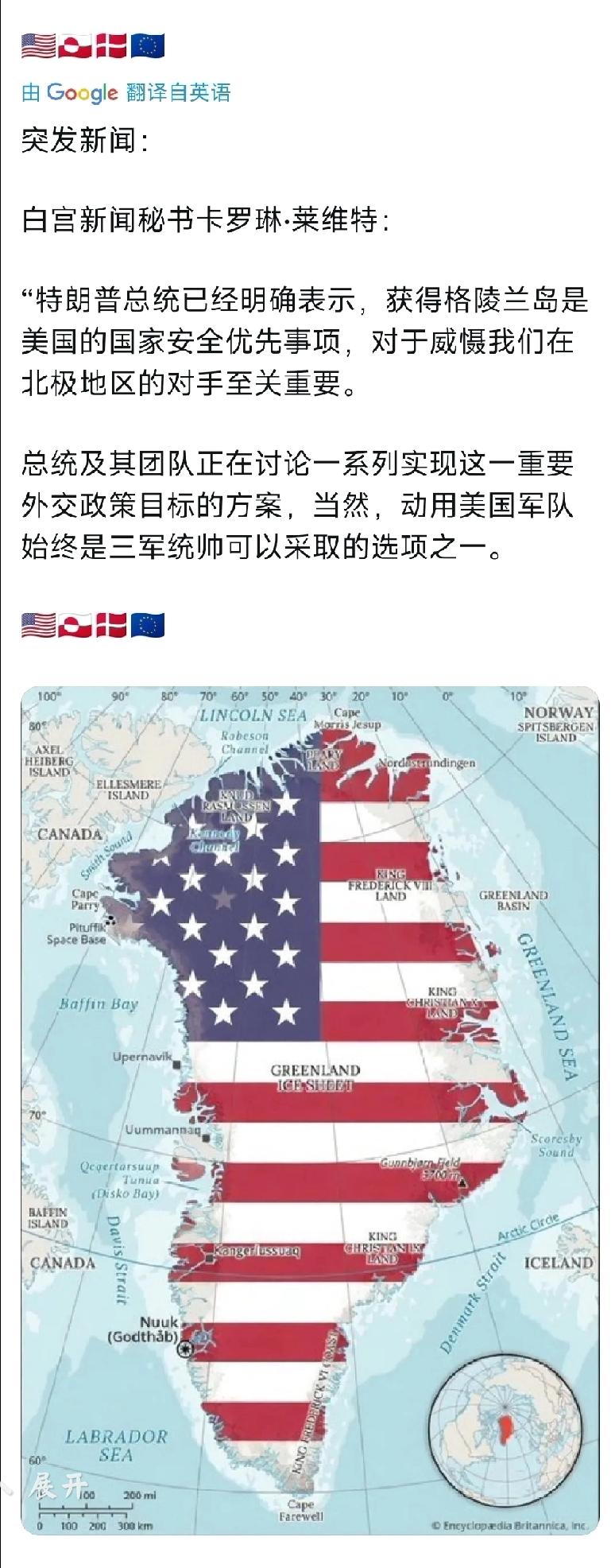 声东击西 请看白宫新闻秘书卡罗琳•莱维特: “特朗普总统已经明确表示,获得格陵兰岛是美国的国家安全优先事项,对于威慑我们在北极地区的对手至关重要。总统及其团队正在讨论一系列实现这一重要外交政策目标的方案。当然,动用美国军队始终是三军统帅可以采取的选项之一。” 个人认为:这是美国政府官方的“声东击西之计”,因为欧盟丹麦,毫无还手之力,欧盟肯定不会,因为丹麦格陵兰岛之事阻拦美国,最多口头表示“反对”,仅此而已。格陵兰岛对于美国人来说是“探囊取物”。 反而是中东的伊朗,无论是以色列方面,还是从石油方面,对于美国人来说都是最佳猎物。