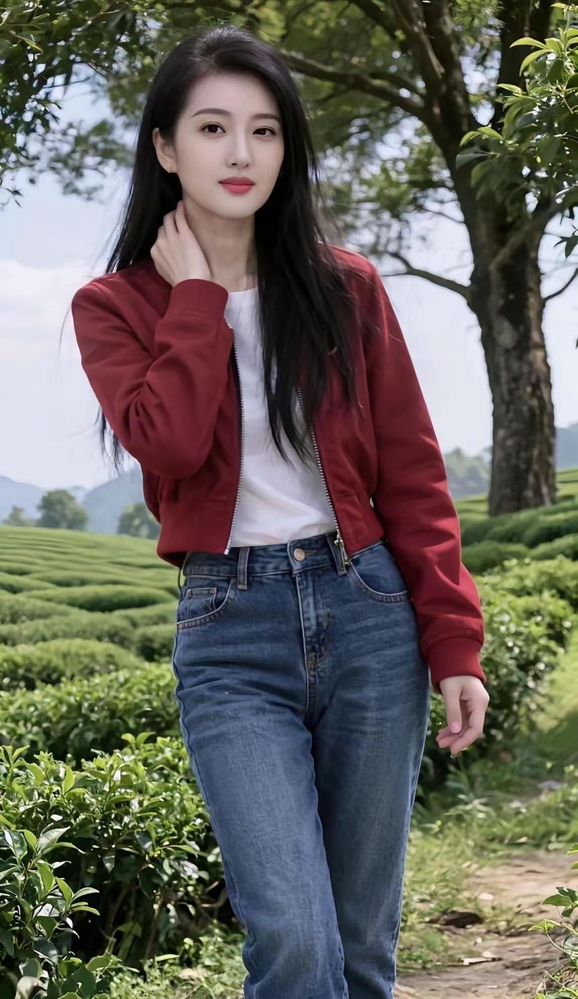 秋日暖阳下的微笑女孩,多彩毛衣与秋叶相映成趣。🍂😊