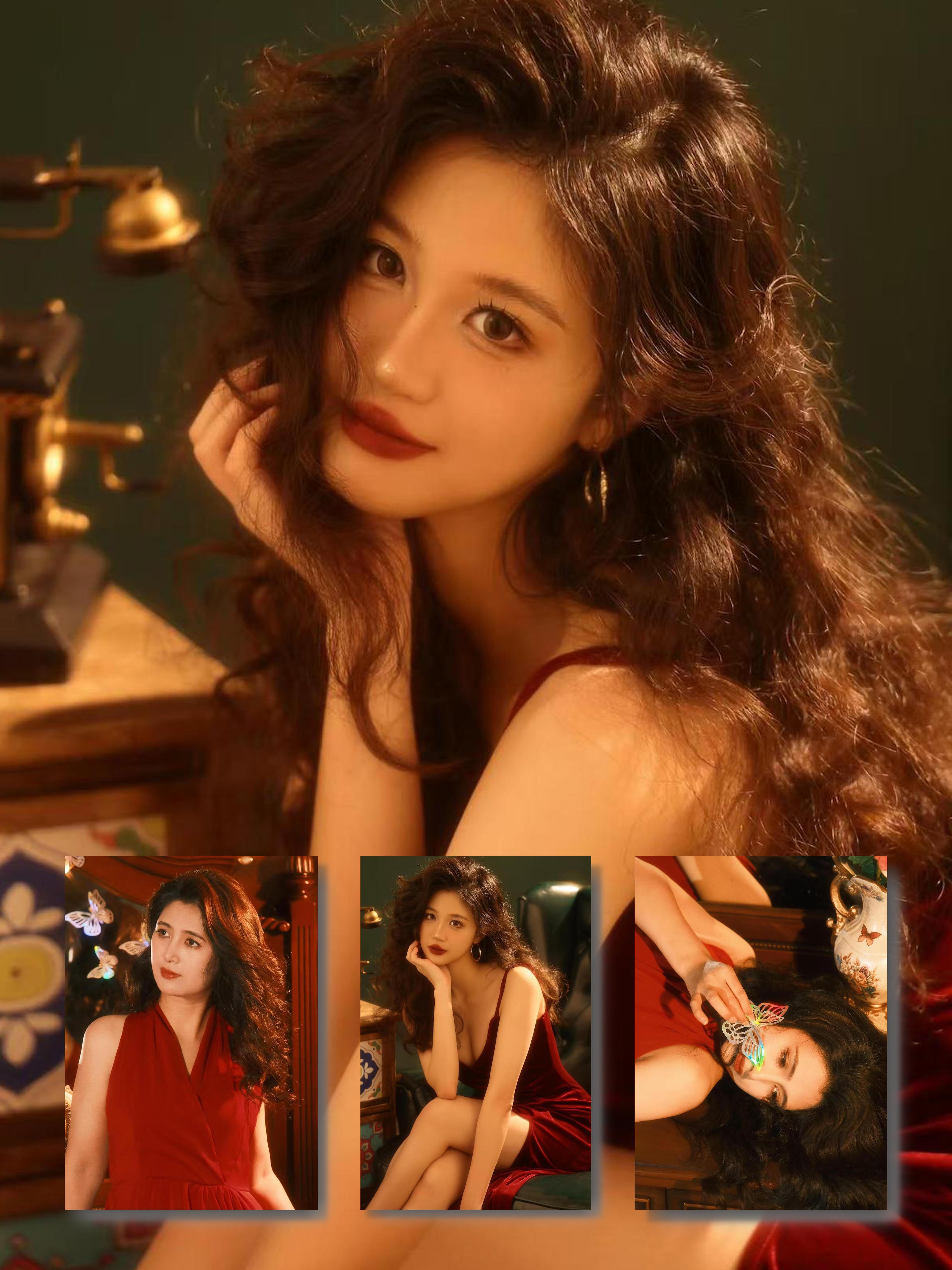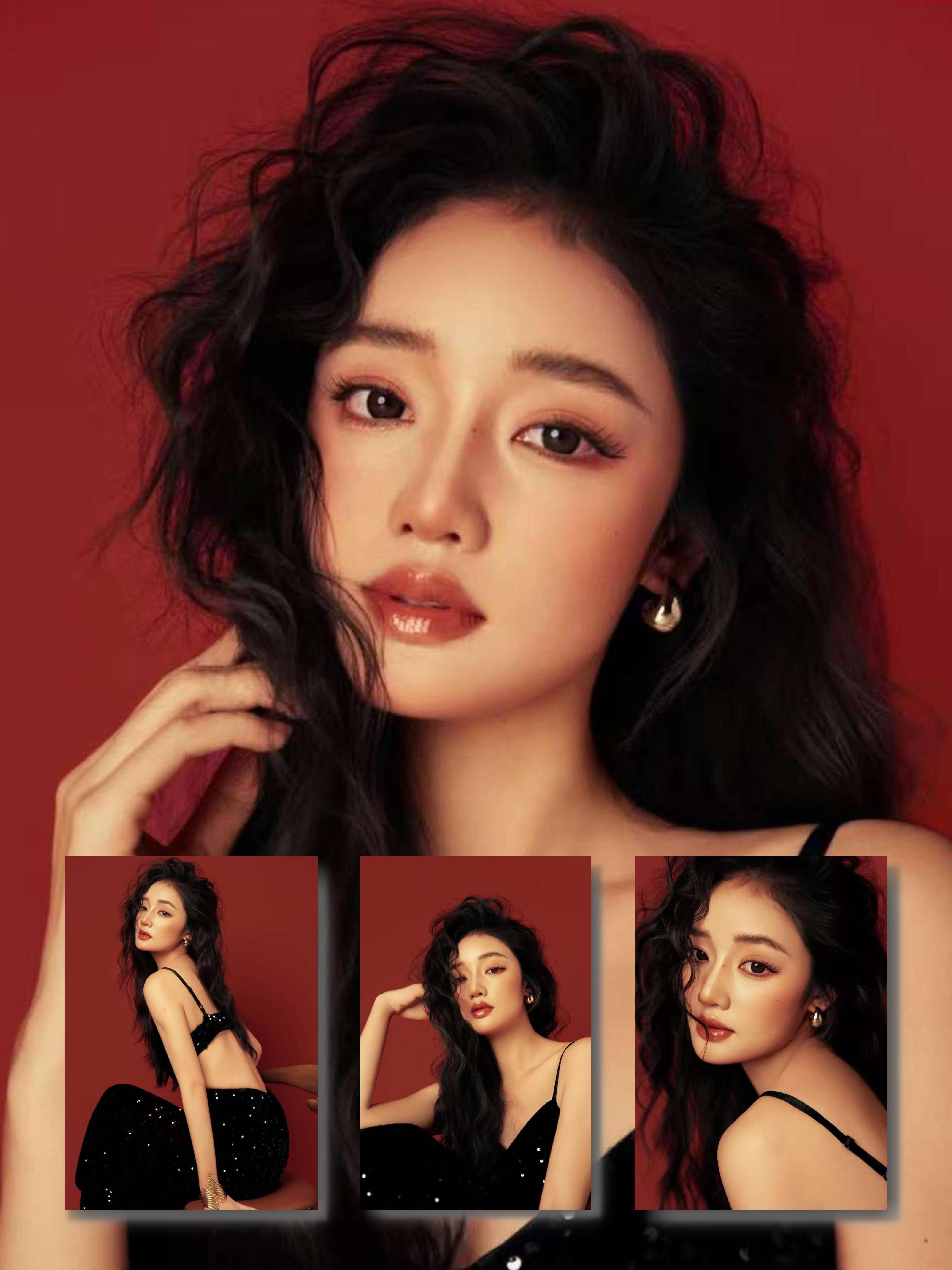红底黑裙新中式|清冷感少女写真直接封神✨。修身黑裙的小镂空刚好戳中氛围...