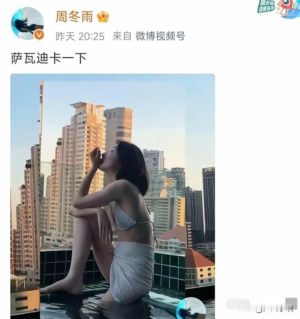 周冬雨,自信的样子好美! 昨日,周冬雨晒出一段度假视频,除了享受海底世界,品尝美食,还有泳装照,网友纷纷表示:好美! 周冬雨身着泳装,坐在水池边悠闲自在,展现出独特的美。 网友纷纷表示: 自信的样子好美! 也有网友质疑: 这样的身材是不是太瘦? 或许,每个人的审美不同,不过,我觉得非常漂亮,恰到好处。