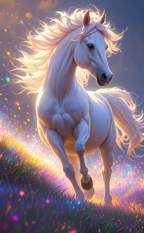 上联:雪骥嘶风,银鬃拂月三千丈 下联:琼驹踏彩,玉爪流星九万程