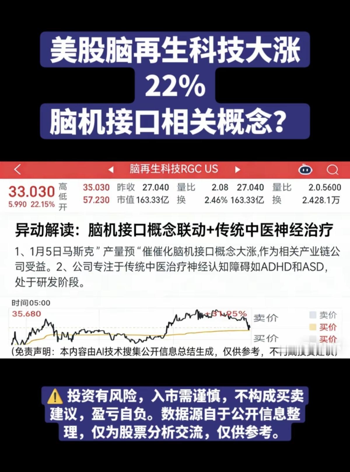 美股:脑再生科技大涨22%! 脑机接口概念股继续活跃?! 脑机接口核心龙头股: