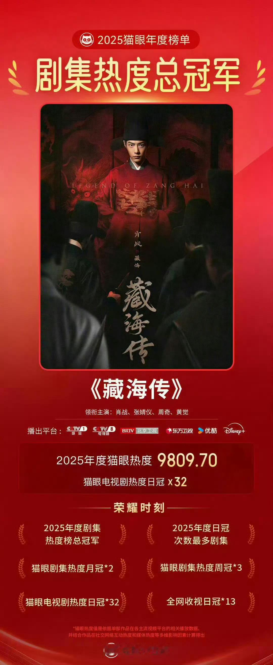 藏海传真乃口碑佳作国剧之光!全年拿下30个冠军,各大榜单top1!!藏海传就是这