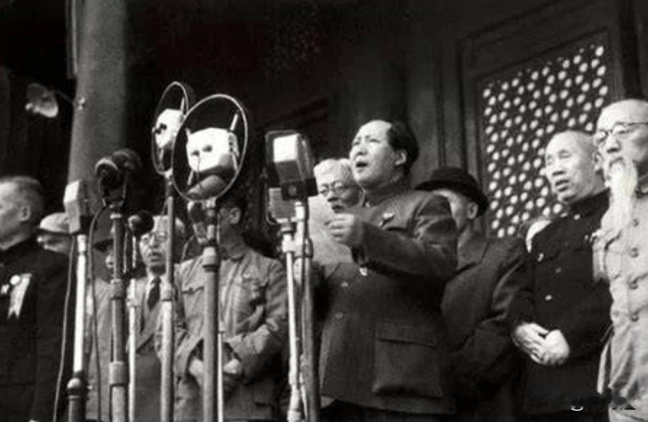 毛主席的霸气果然名不虚传,开国大典前夕,周总理问毛主席:“礼炮应当鸣几响呢?”毛主席想了想说:“就鸣二十八响。”当时世界礼炮的鸣响通常为21响,这是惯例,但毛主席并不想按照所谓的国际惯例来,因为他老人家从骨头里就蔑视这些“世界惯例”。 “礼炮鸣几响”,在很多人口里就是一句闲聊话题。 可放在一九四九年那天的天安门城楼上,味道就完全变了。 懂门道的人一掰手指头就明白,这是把中国共产党从一九二一年走到一九四九年的二十八年,直接刻在礼炮声里,既不跟风,也不凑热闹。 天安门前那天的人海,三十万军民挤得水泄不通。很多人是头一次走进这样的大场面,鞋上沾着土,眼里却亮得很。 礼炮还没响,心已经提到了嗓子眼。 等到礼炮阵一排开,五十四尊礼炮口朝天空伸过去,二十八响一声接着一声砸下来,广场上的胸腔跟着一块发颤,那种感觉,谁也替不出来。 真正把这场典礼推到顶点的,不只是炮声。 阅兵结束后,群众游行接着走,队伍绕过城楼脚下,旗子晃得人眼花。 照流程,大家该继续往前走。偏偏就在快出广场的那一截,队伍一下慢下来,有人扯着嗓子喊了句“毛主席万岁”,像火星落进干柴堆,四周的喉咙都跟着炸开,整片广场回荡同一句话。 城楼上,毛主席走到那条熟悉的栏杆边,身子略往前,抬手向下挥了挥,没有做什么排练过的姿势,只是用惯常的那股平静劲儿高声回了一句:“同志们万岁。” 两头你来我往,声音汇在一起,像一股春水往城楼上扑。 那一刻,谁也不讲大道理,谁也不讲条条框框,就用这样的呼喊,把新国家的领袖和底下的“同志们”绑在同一条线上。 这一天其实从会场里起头。 下午两点,北京城里的另一处地方,中央人民政府委员会第一次会议已经坐满人。 那是新中国的头一回“开正班子”。 会上通过的事,一件比一件重:宣布中华人民共和国中央人民政府成立,不再是筹备,不再是预备。政权一经宣布,就得说明按什么规矩办事,于是把《中国人民政治协商会议共同纲领》定成施政方针,相当于告诉全国,从哪几条路往前走。 会议还给外部世界放了一句硬话:这个新成立的中央人民政府,是代表中华人民共和国全国人民的唯一合法政府。旧账就此翻篇。 与此同时,也不是把门一关自说自话,还把原则写清楚:愿意在平等互利、互相尊重领土主权这些规矩下打交道的外国政府,中国这边都欢迎建交。 一句“唯一合法”,配上一套“平等互利”,新政权的态度摆得明明白白。 时间推到下午三点,舞台转回天安门广场。 城楼上的位置早就排好,中央人民政府主席、副主席和各委员坐在一排。林伯渠这回不再在会场念决议,而是在城楼上宣布典礼开始。军乐队抬起号,奏响《义勇军进行曲》,熟门熟路的旋律从喇叭口涌出来,飘过旗杆、屋檐和成片的人头。 毛主席站到电钮前,按下那一下,广场边上的白色旗杆立刻有了动作。 第一面五星红旗被稳稳拉起,往二十七米的高度慢慢升。 风从城楼那边刮过来,旗面抖动,颜色亮得刺眼。很多人仰着头看,脖子酸了也舍不得低下。 礼炮就在这时候跟上节奏。 五十四门礼炮按事先安排好的间隔齐声轰鸣,总共二十八响,不多一声也不少一声,每一炮都像给过去的一年盖一个印。 从一九二一年党在南湖船头举起旗子,到一九四九年站上天安门城楼,整整二十八年,用这么一个数字收在一起,算是对这段路的一种记账。 礼炮声没散干净,毛主席接过稿子,开始在城楼上宣读中央人民政府公告。 那句“中华人民共和国成立了”,出口平稳,没有夸张的手势,字字掷地。 广场上几十万张脸朝上望着,很多人一生只会亲耳听到这么一次,谁也舍不得心不在焉。 这句话宣的是一个新国家的诞生,也把下午两点会上那一堆“决议”和“任命”,用一句话扣成完整的一圈。 公告之后轮到军队登场。 朱德着装整齐,从城楼下来,登上检阅车,去看他带出来的队伍。聂荣臻站在阅兵总指挥的位置,把各路部队调度得井井有条。 队列自东往西,排得像尺子量过。 最前面是两个海军排,海风没吹过来,海军蓝却先到了天安门。后面跟着一个步兵师,一个炮兵师,一个战车师,一个骑兵师,枪械、火炮、钢板链条和马蹄声混成一种特殊的节奏。 空中的队形也没落下,新组建的空军派出十七架飞机,从东边飞来,在广场上空分出高低,沾着阳光一闪一闪地过去。 朱德在检阅完毕后回到主席台,拿出中国人民解放军总部命令,面对天安门广场宣读。 命令里说得干脆,要求全体指战员坚决执行中央人民政府和人民革命军事委员会主席毛泽东的指示,把国民党反动军队的残余抓紧肃清,把还没解放的土地彻底解放,同时铲除土匪和各种反革命匪徒,对一切反抗和捣乱的动作坚决镇压。 这不是一句空口号,而是那三小时阅兵后面真实的任务单。 整个阅兵前前后后拖了三个小时,《中国人民解放军进行曲》反复在广场上空回旋,脚步声整齐地踩在地砖上,把新中国的军队气质展示给天安门前的每一双眼睛。 人们不是看热闹,看的是以后能不能安稳过日子的底气。