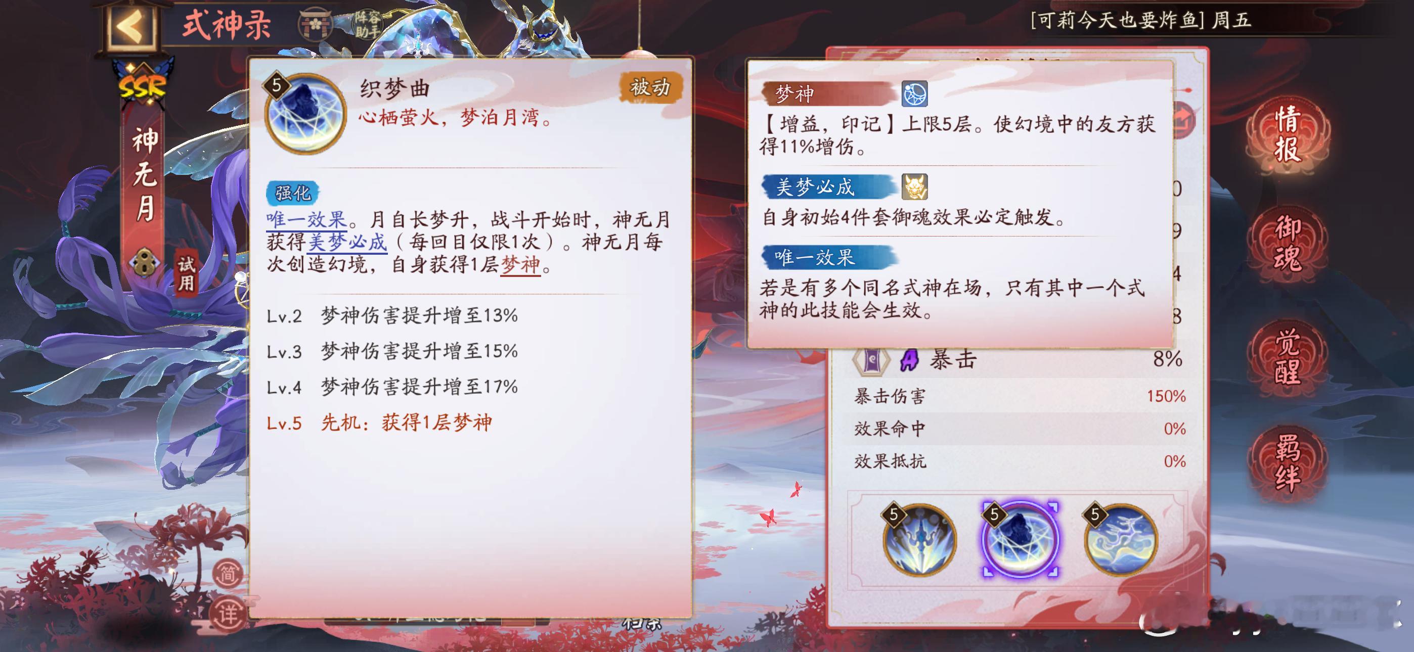 阴阳师手游超话创作官游戏百科 【神无月】技能+面板一览■是功能型辅助+小型打火机(回复/减免鬼火有限)■目前看来,千姬、因幡的地位仍无法被撼动(具体得测测,如果鬼火运行流畅,85%增伤+御魂稳定触发还是很有说法的)