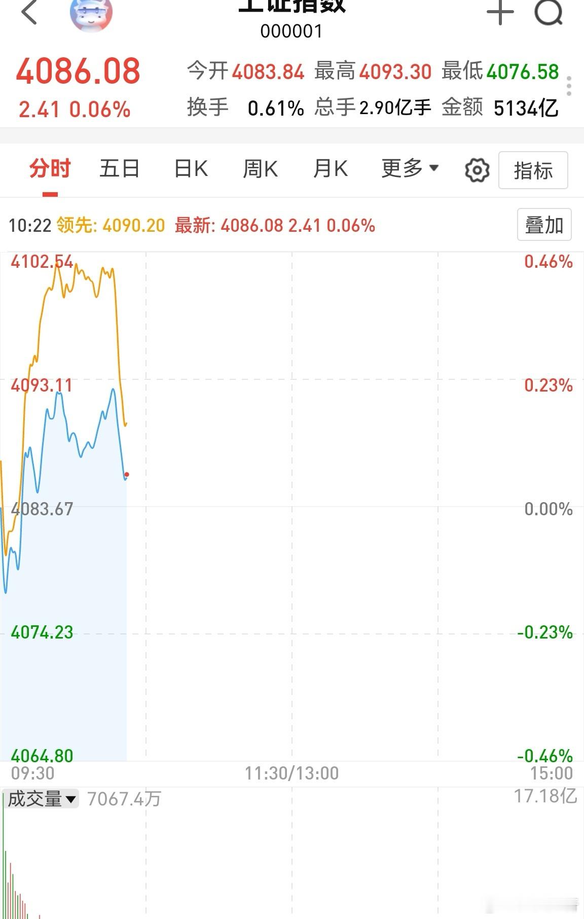 早盘继续阳线,逼近4100点。虽然个人受限于券商板块的回调,亏了不少,但是还是很