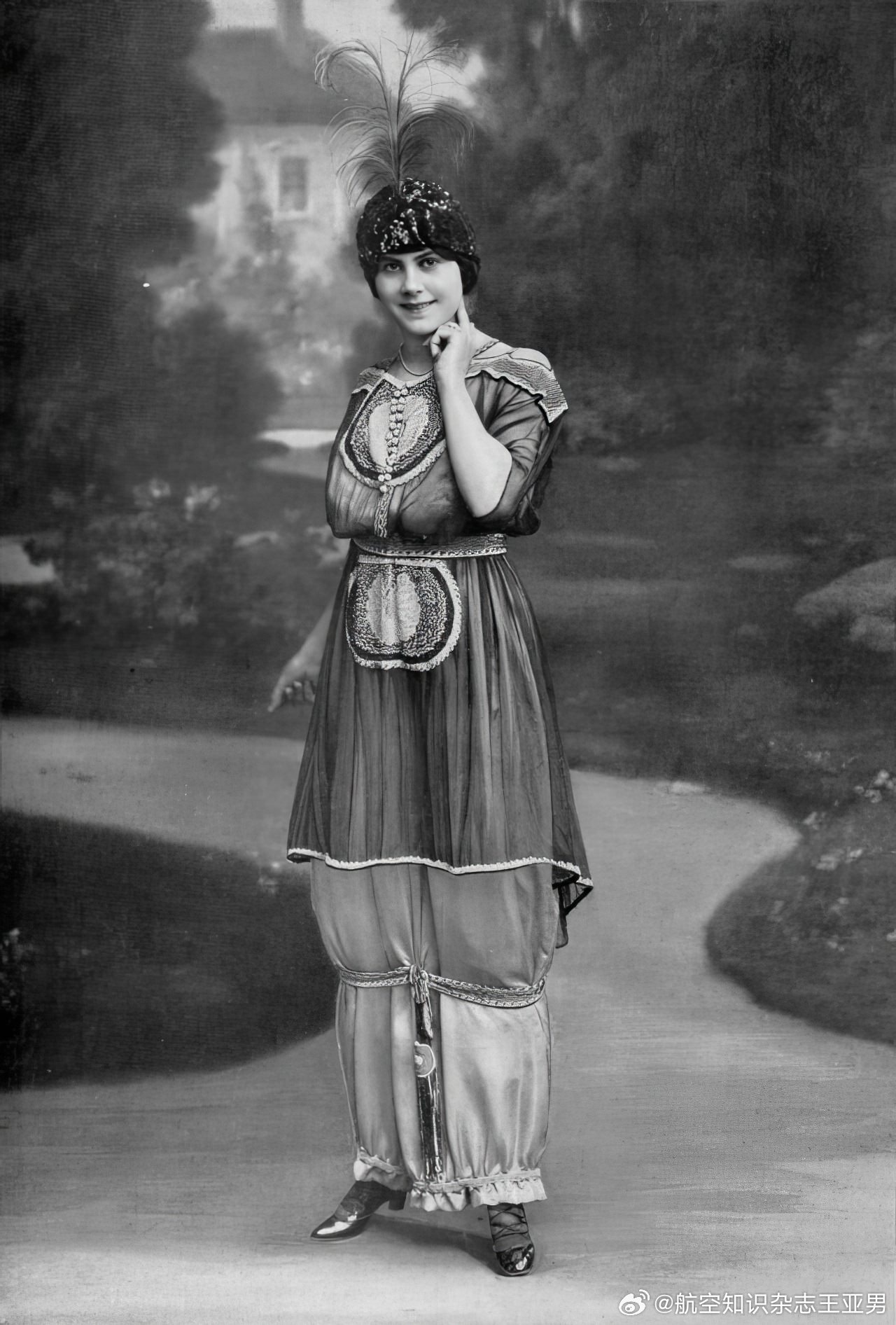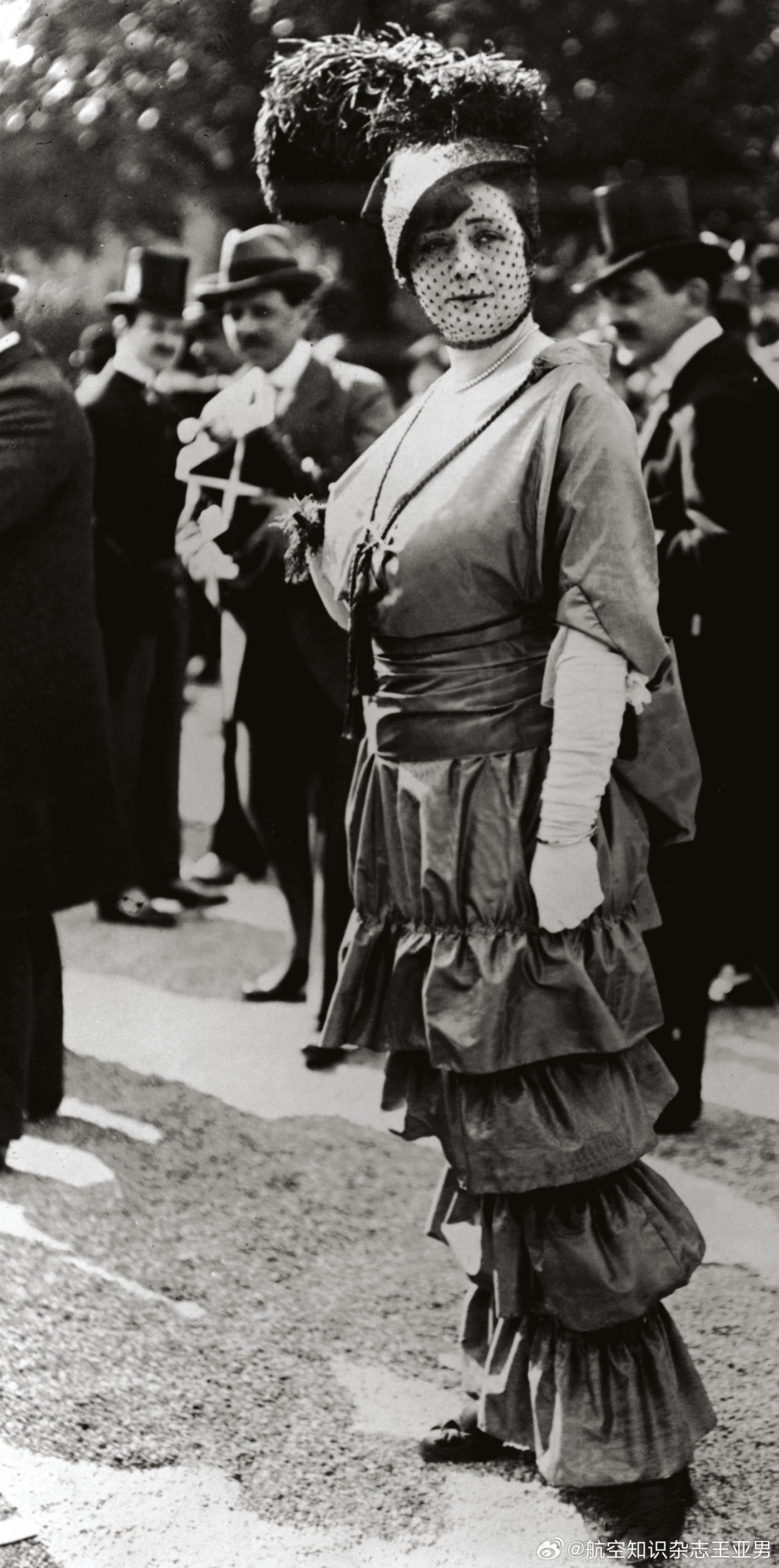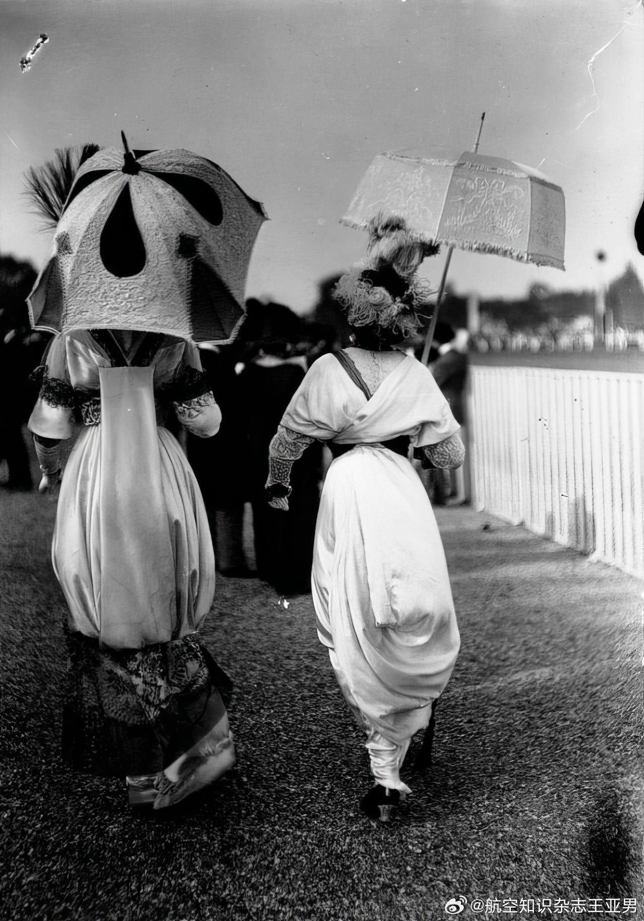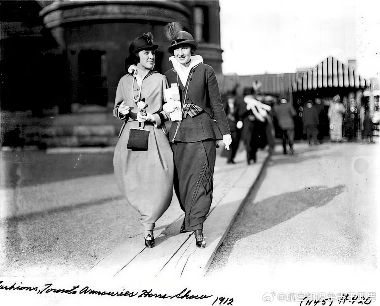 #航空创作计划# 最早乘坐飞机那些人,都是些不怕死的,因为那时候的飞机不仅没有专业的安全座椅,更没有专用安全带。这还不算,莱特式飞机上飞行员和乘客通常是并列横向座位,中间可能隔着发动机和传动机构,那年月人们还没有搞明白包覆式整流罩的作用,轰隆隆高速运转的机械结构全部裸露在外,与乘客距离大约只有几英寸。乘坐这样的飞机,不仅不能恐高,还得忽略许多机械安全禁忌,更重要的是你得对简陋的航空器保持足够的信任。那时男士乘坐飞机的尚且不多,女士就更是少之又少。少归少,总归还是有。一旦女士们坐上飞机,她们会发现自己面对的麻烦比男性还多:女性宽大的裙摆会钩挂在飞机各种支楞机械结构上,造成更大的风险。此外坐在完全敞开式座位上乘机起飞,迎面气流会掀开她们的裙摆,造成可怕的走光问题,这会让她们在20世纪初的社会瞬间社死。于是,最早的女性乘客们想了个临时措施,那就是用一根细绳子在裙摆下方捆扎起来,无论是凯瑟琳·莱特,还是埃蒂斯·奥吉尔比·伯格,都使用了这个办法。这种上部宽大底部狭窄的独特外观在当时欧洲上流社会服饰界提供了新奇的灵感,直接促使潮流设计师推出了窄底裙(narrow hobble skirt),从1910—1913年间风靡一时,当时许多人更乐于称其为“绊绊裙”——因为穿上这种裙子没法迈开大步行走,走起路来就像随时会被绊倒。今天“绊绊裙”已经不再流行,但那种奇特的外观却深深印在了社会文化中。如果你去看看那种风行于四五十年代的古典款带收腰的可乐玻璃瓶,你会发现在英文中它们叫做“hobble skirt bottle”,为啥,因为它们的样子很像当年女士的“绊绊裙”。今天,史学界对于“绊绊裙”到底是否源自飞行活动尚存争议,航空爱好者认为二者之间存在因果关系,而服饰文化学者则持反对意见,这段历史并不容易说清楚。但是有一点并不存在太多悬念,那就是作为当时最勇敢的群体,20世纪初的飞行者在社会文化风尚领域拥有无与伦比的号召力,任何服饰元素一旦和他们扯上关系,无论是否讹传,都能形成一股风潮。