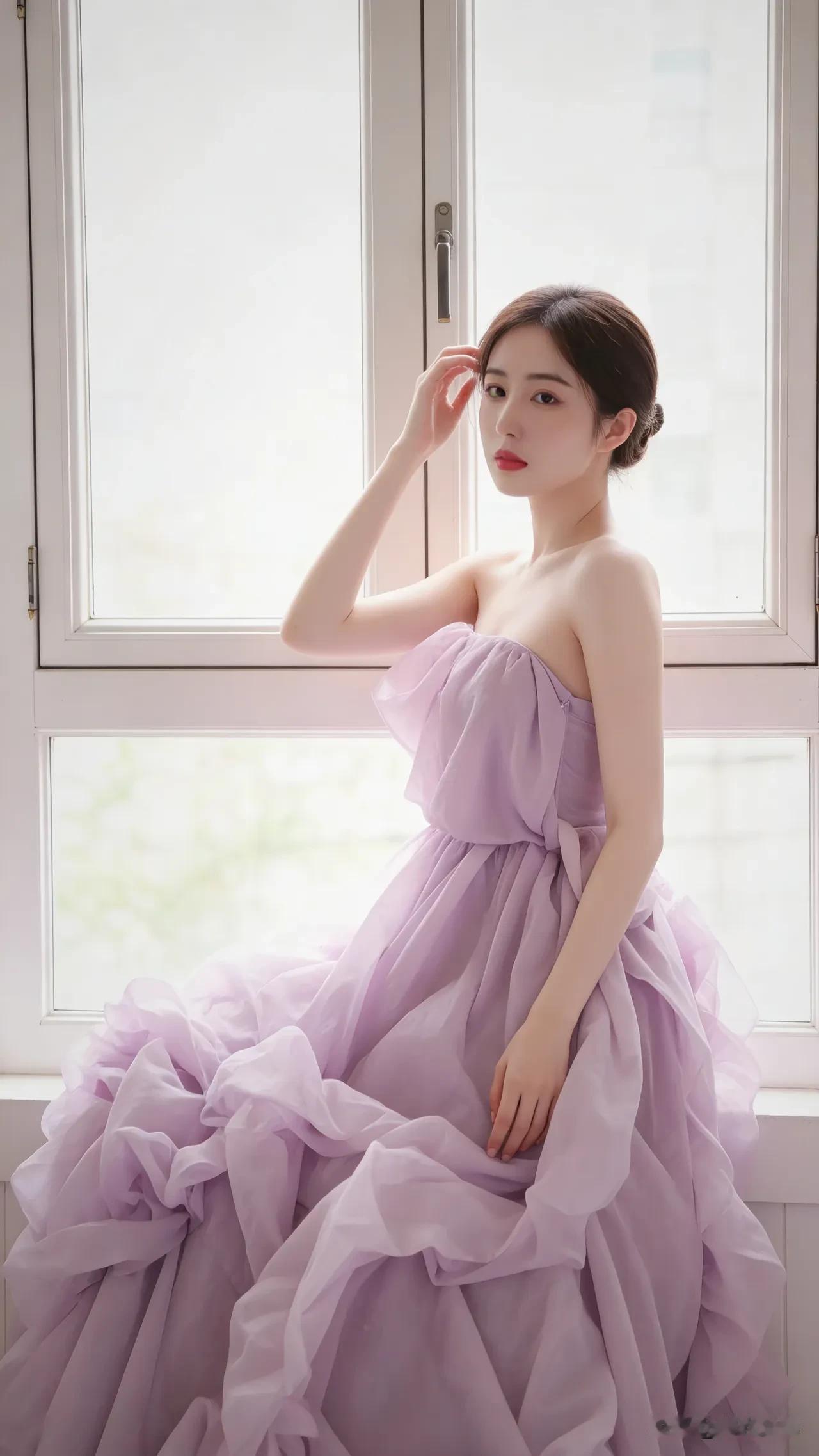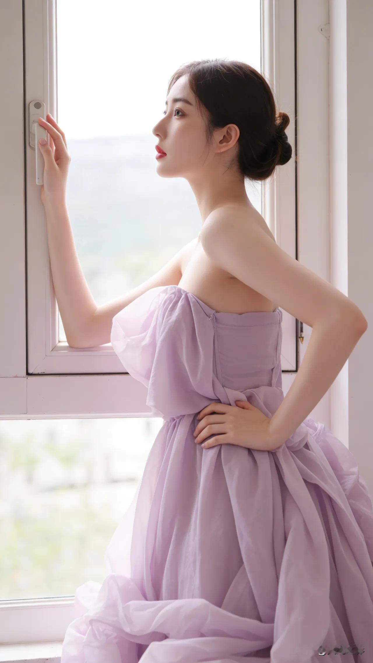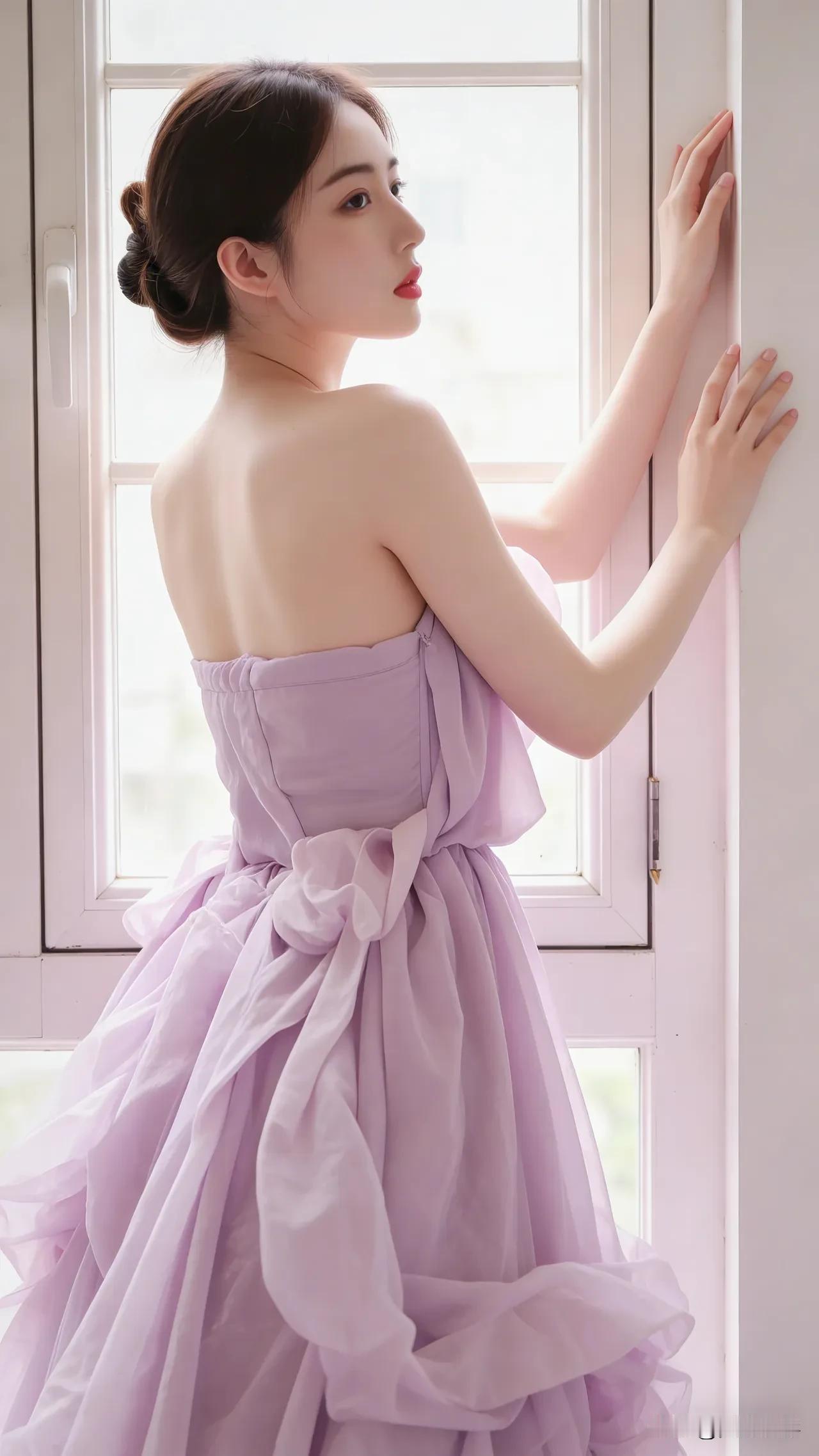 光之影 窗边少女,梦幻紫裙,温柔时光 温柔蓝裙少女紫裙花漾少女