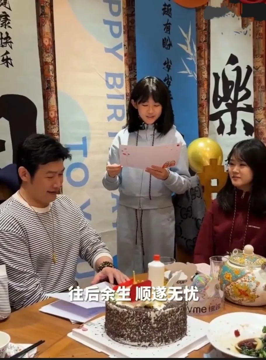 陆毅生日女儿读手写信哭了! 陆毅50岁生日当天,妻子鲍蕾分享的庆生视频中,两个女