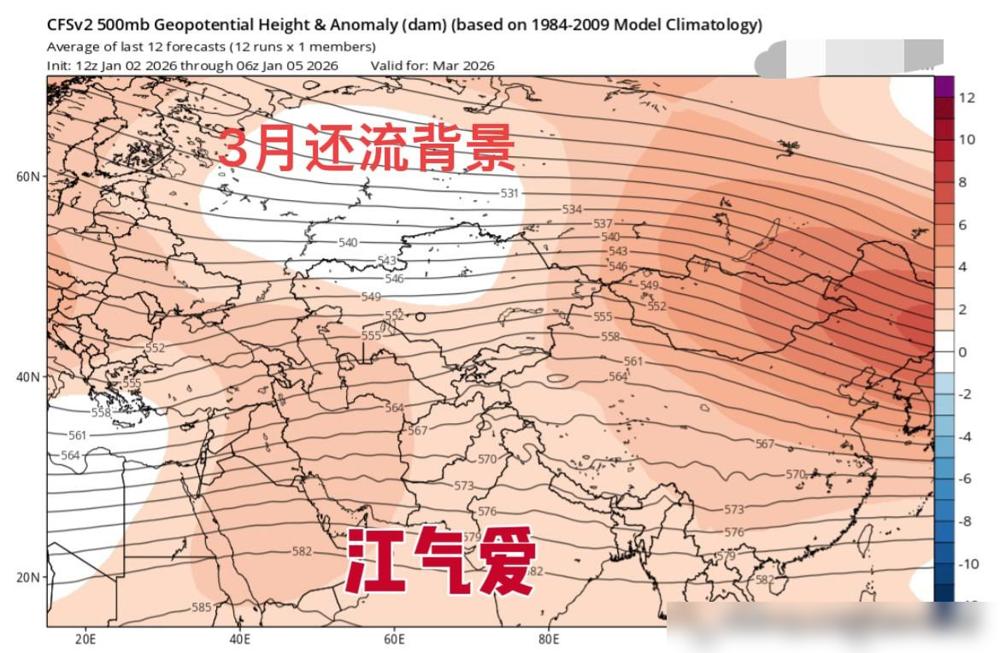 【2026年1/2月气象观察】CFS集合模式预报(2月-3月)中东部由之前总降水量值偏少现象慢慢将迎来偏多趋向。 看最近的气象数据走势,2026年开年这几个月的天气剧本可能要重新写了。简单说,就是中东部地区要告别之前的“贫雨”状态,水汽条件正在肉眼可见地变好。 最明显的转折可能就在2月份。我发现之前那个老是挡路的“东高”终于舍得减弱了,环流变成了“北高南低”,这等于给南方的雨雪天气开了绿灯,水汽引导会比1月份顺畅得多。 到了3月份,西北到长江中下游的朋友们可能要多备几把伞了。那时候大概率会迎来“东高西低”的格局,西边的冷空气和南支槽一碰头,降水转多的趋势就非常明显。 我个人觉得,现在的拉尼娜表现得挺有意思,处于一种“不强不弱”的中等水平。这种状态其实挺微妙,它没有强势到主导一切,反而给了南支系统更大的发挥空间,活跃度在1-2月明显加强。 相比去年冬末那种干巴巴的状态,今年这波信号暗示后冬的雨雪过程会更有存在感。 我觉得大家可以先有个心理预期,尤其是春运后期或者开工那段日子。这种降水由少转多的过程,虽然缓解了干燥,但也可能给出行增加不少变数。 说白了,今年这种冷暖空气频繁“接头”的架势,感觉比去年要热闹不少。 当然,这种长跨度的模式预报还得动态观察,咱们先看个大方向,具体的节点还得等临近了再看。