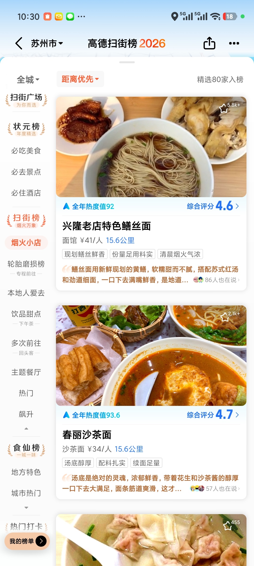 #新年扫街计划# 每次外出吃饭总是在纠结吃哪家,最近我多次使用高德扫街榜,基本上没有踩雷的,主要是口味、服务和餐厅环境等都比较符合预期。真实两个字,本身就是最难做的事情,“比真实更真实”,就更难了。这次我很开心的看到,高德扫街榜2026年升级3点:1,是全季节、全品类、全人群、全球化的真实榜单; 2,熟人背书、同好推荐、人人共建的可信榜单; 3,是实景还原、沉浸交互、世界模型驱动的体验榜单。 看来,高德扫街榜,“真实”这个人设是立住了。而且我最近正在做一件事情,就是按照高德扫街榜上的餐厅一家一家的吃,争取把附近的餐厅吃个遍,然后自己再筛选出比较符合自己胃口的餐厅,作为自家“食堂”,哈哈~#高德扫街榜#