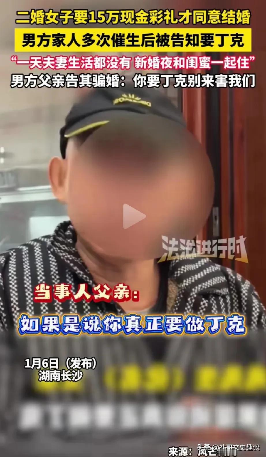 这样女人太不地道了。收了男方15万现金才同意结婚,结了婚以后一直和她闺蜜住在一起,不和她老公一起生活,家人多次催促她,才告知老公说要丁克。 她老公的爸爸说,你要丁克,就不要同意结婚,你这彩礼也收了啊,最后才说自己不生孩子,你这不是骗人吗? 她老公的爸爸还说,人家几代单传,还指望着儿子结婚,延续香火呢,你这么搞不是要断了人家香火嘛。