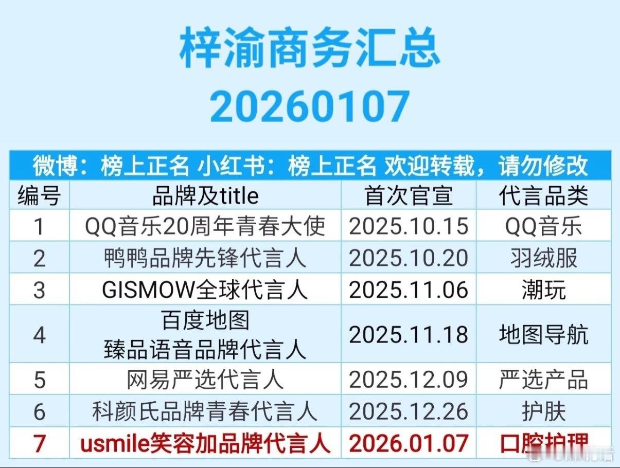 恭喜梓渝成为笑容加代言人,一个月内解锁第三个商务,商业价值凸显