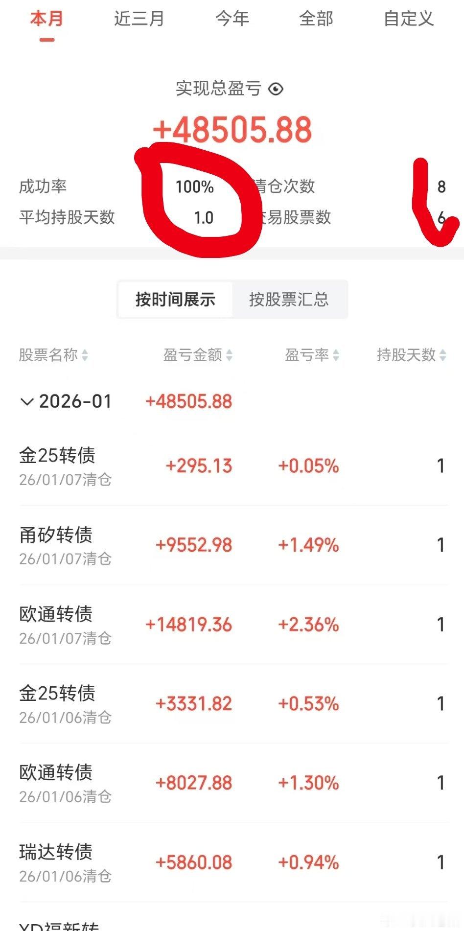 2026前3天完成6个点,目前做了8笔交易,全胜。这个薅羊毛速度还是不错的吧可转债 这样稳稳的幸福还是很舒服的