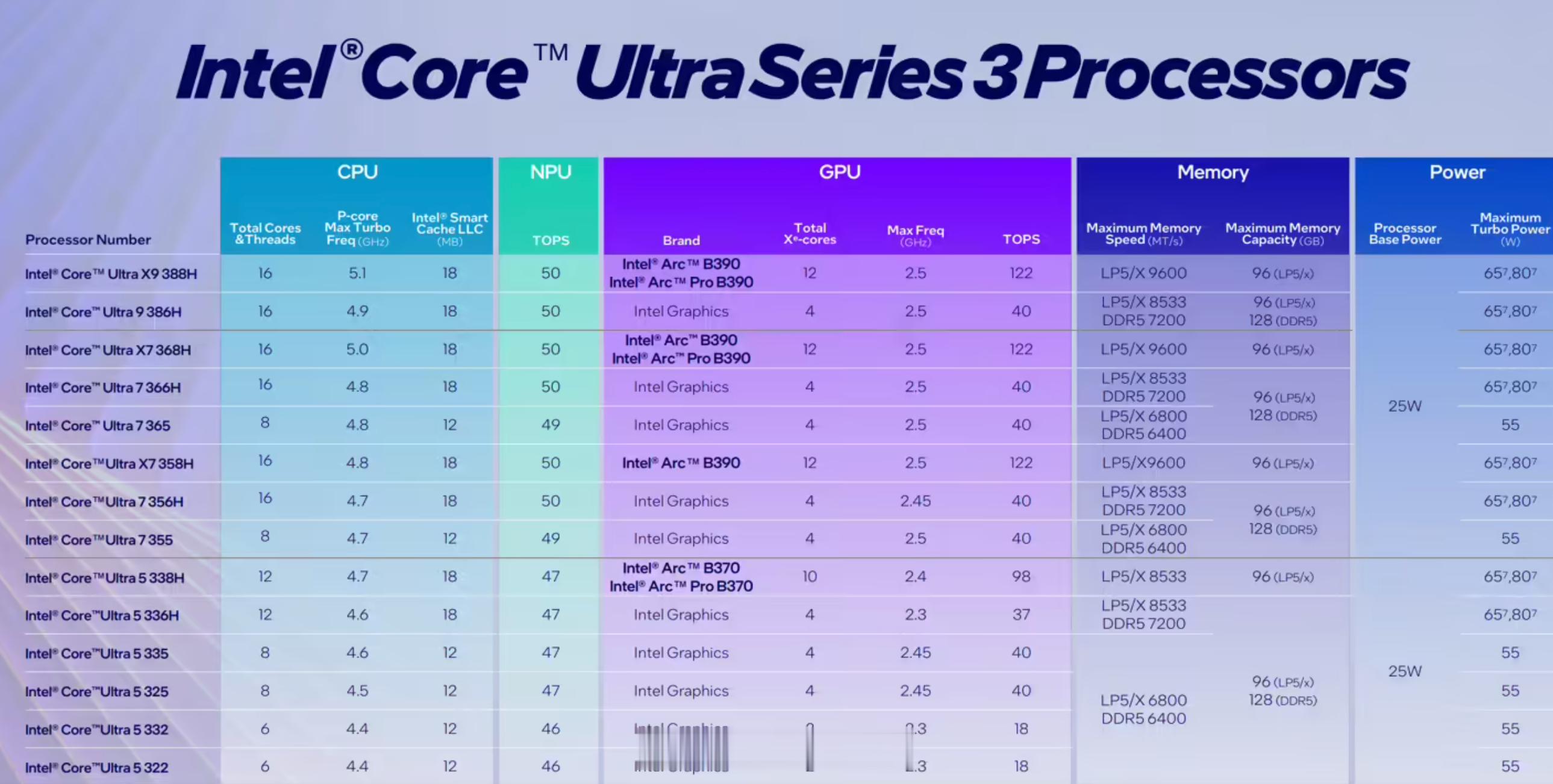 CES2026英特尔发布基于 18A 工艺的 Panther Lake 酷睿 Ultra 系列 3 处理器,顶级型号配备 16 个 CPU 核心、12 个 Xe 核心(英特尔的图形架构)以及 50 TOPS 的NPU 算力,与上一代芯片相比,带来 77% 的游戏性能提升、60% 的多线程性能提升,以及 27 小时的电池续航。用智搜高效看懂CES2026 之前有爆料,英特尔可能会给苹果代工,用 18A 工艺帮苹果生产低端的 M 系列芯片,还挺有看点的,最快 2027 年年中开始供货。