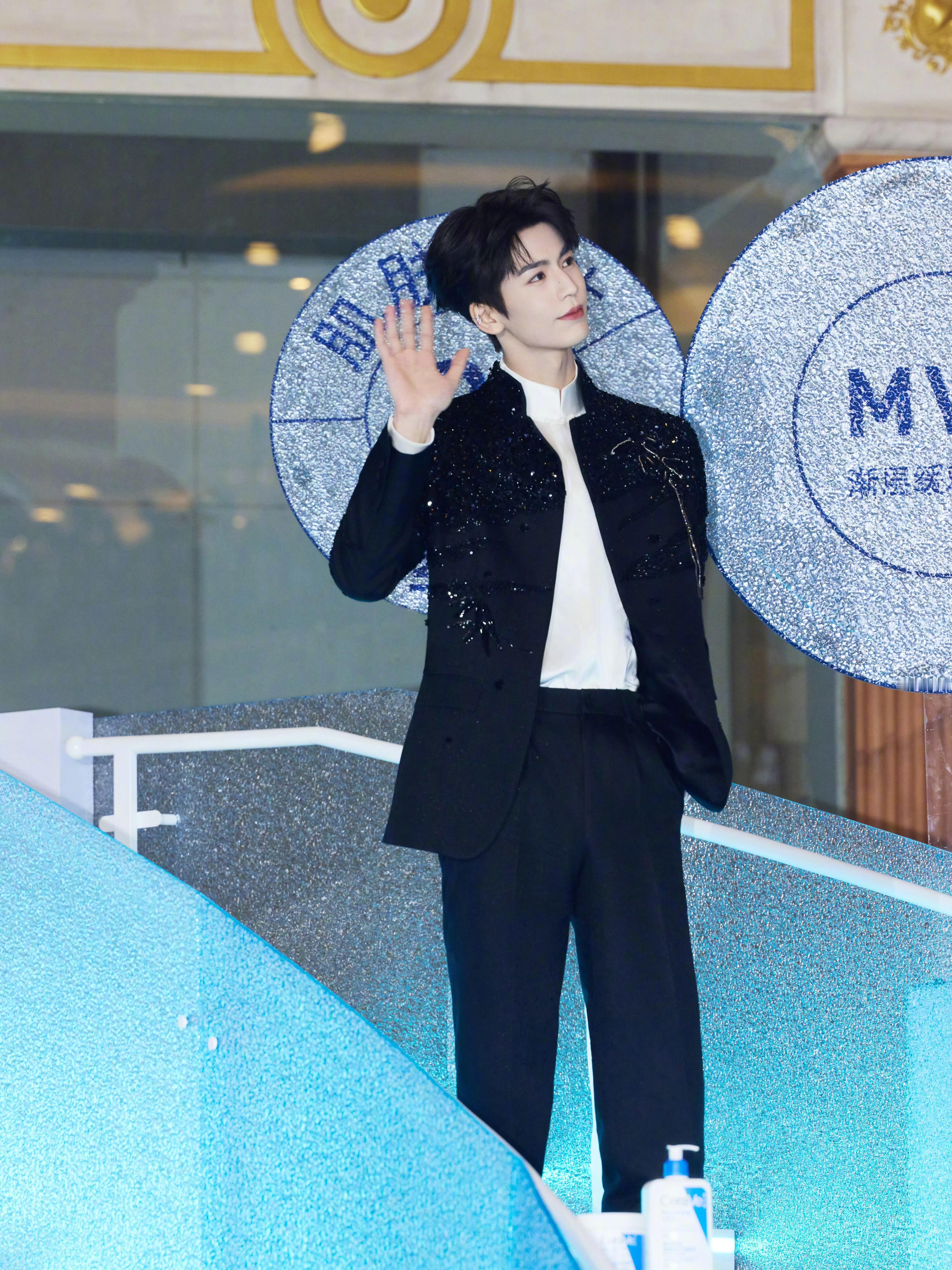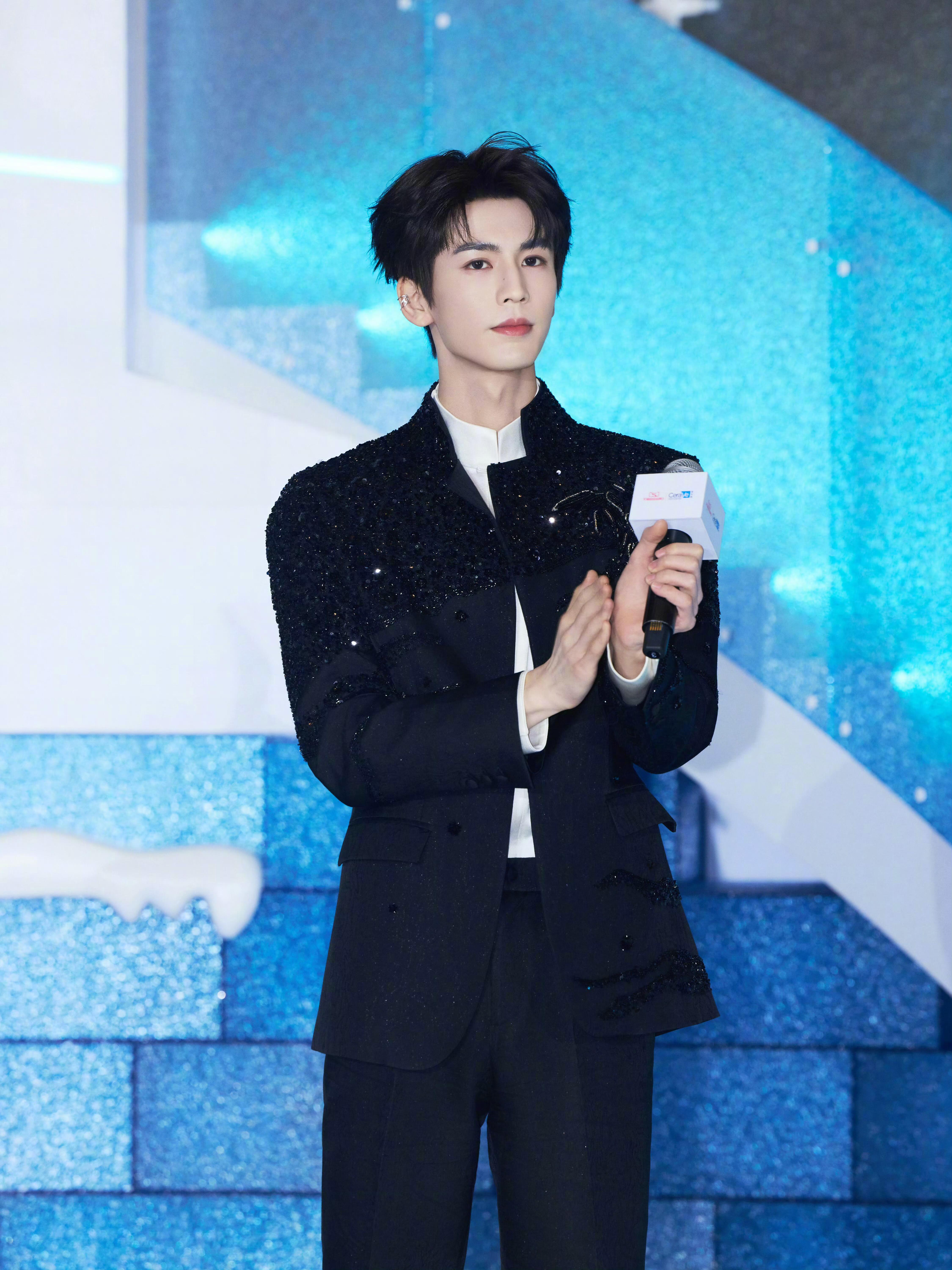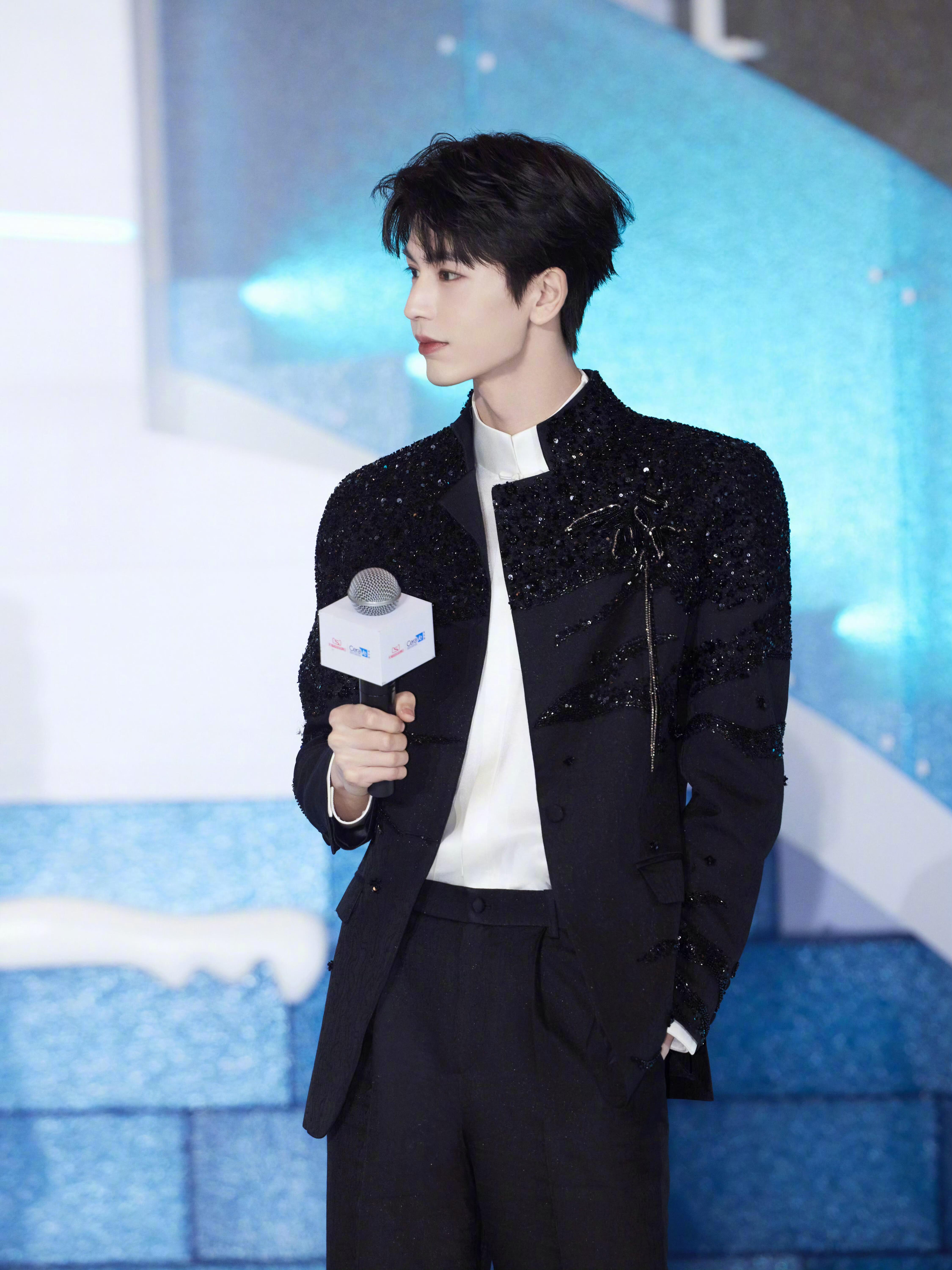 张凌赫明眸皓齿贵公子张凌赫出席代言品牌造型look,身着SAINTJOY亮片串