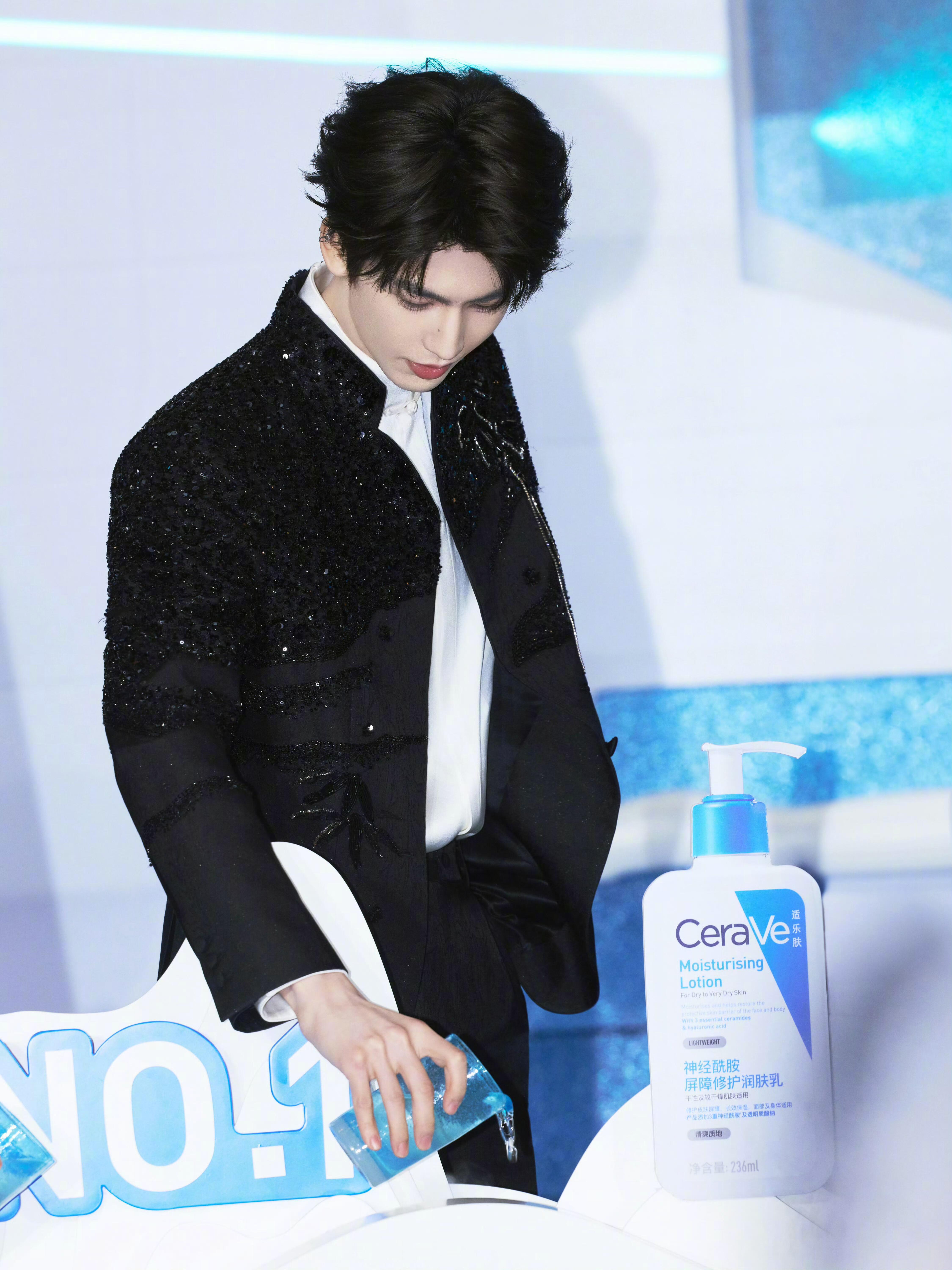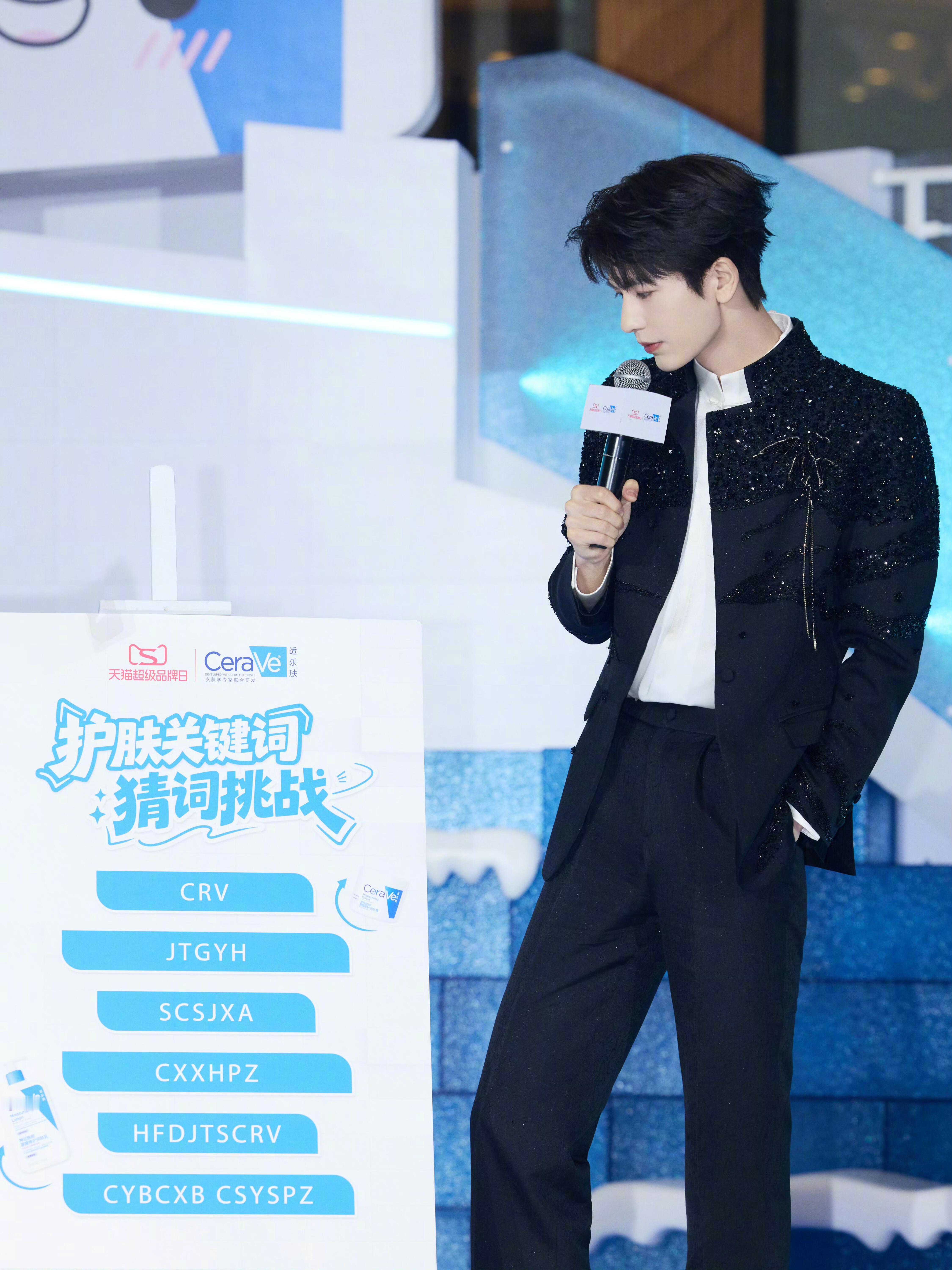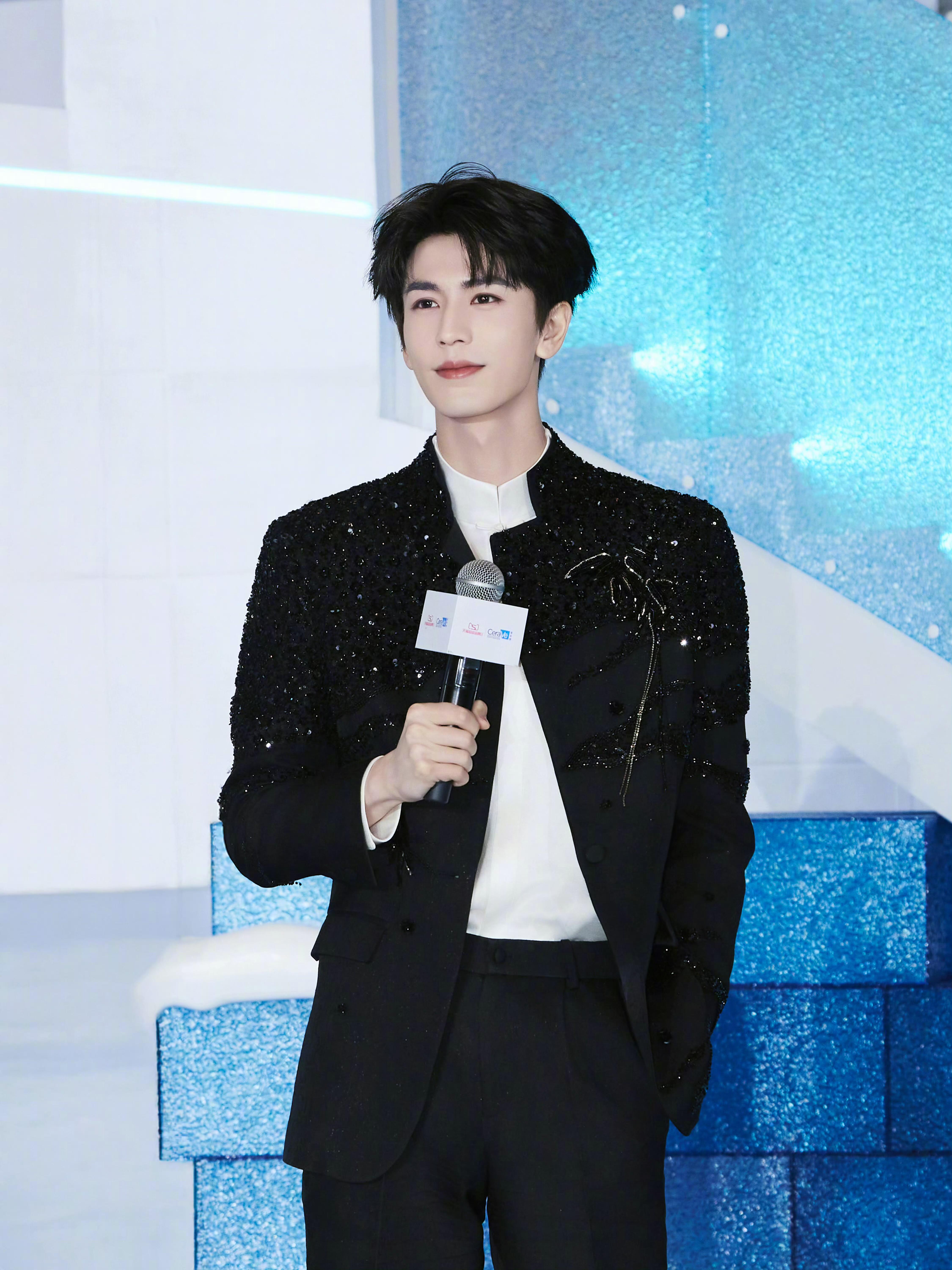 张凌赫明眸皓齿贵公子张凌赫出席代言品牌造型look,身着SAINTJOY亮片串