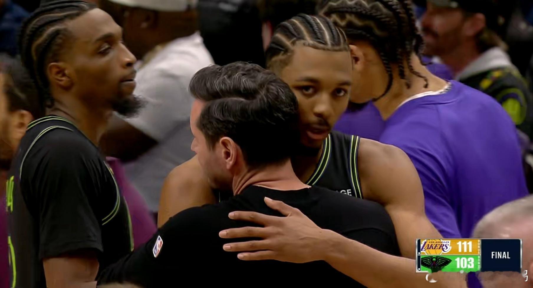 三连胜!双核合砍60+18!赛后传来5条好消息,2条坏消息及2吐槽!北京时间1月7日,湖人客场挑战西部倒数第一的鹈鹕,最终以111-103战胜鹈鹕!赛后好消息其一, 41岁的詹姆斯此役出战33分钟,高效砍下30分8篮板8助攻2抢断1盖帽的全面数据。更吃惊的是,老詹在41岁生日后过去三场比赛场均可砍下29分8篮板8助攻,命中率58.8%,三分命中率35.3%,罚球命中率91.3%!真的越老越妖啊!而今天再次扮演关键先生且多次送出暴扣!太炸了!现在谁还说他复出拖后腿了!其二,东契奇今天全场30分10助攻且有5失误,效率算中规中矩,而今天三分手感不佳还一直执着于三分球,这点要批评,不过好在他第四节那两记神仙的三分球,直接为湖人锁定胜局,今天的七七就是个又臭又香的球员没什么意见吧!其三,艾顿状态明显回升。“顿宝”最近两场球权明显增加,积极性和态度都有显著提升。本场他16投9中,得到18分11篮板3盖帽,在内线攻防两端都展现出了应有的统治力,雷迪克多给他点战术吧,他近框抛投那一手还是很稳的!其四,湖人赢球,马刺输球,西部第二近在眼前!今天湖人赢球的同时,直接竞争对手马刺以105-106惜败给灰熊。这样一来,湖人与马刺之间的胜场差进一步缩小。更巧的是,两队明天将背靠背直接对话,湖人有望重返第二!其五,“彪哥”范德比尔特是真好使! 搞不懂为什么雷迪克之前要连续dnp(无法出场)彪哥8场?而彪哥今天4投3中得到7分8篮板4助攻,在防守端满场飞奔,态度拉满,就是你几乎能看到全场的每一个角落都有他的身影!打球多么激情的一个人,他跟斯玛特是湖人的“新双鬼”组合了!其次坏消息跟吐槽其一,湖人今天赢得真的不轻松!要知道对方可是西部倒数第一!而湖人在本场一度领先11分的情况下被对手逆转,最多曾落后9分!面对西部垫底、且已遭遇7连败的鹈鹕,比赛打得如此胶着甚至险些翻车!其二,“三板斧”痛点依旧尖锐!胜利无法掩盖根本问题。数据显示,湖人本赛季板凳得分联盟倒数第一,三分命中率倒数第五,防守效率值也是倒数第五。今天这场胜利更多依赖核心的能力,而防守漏洞、三分不稳及替补乏力这三大结构性问题,依然是制约湖人走得更远的致命伤。其二,吐槽斯玛特在关键时刻的“神经刀”属性!斯玛特今天在防守和组织表现不错,全场13分外加4记助攻!但他本赛季多次在关键时刻出现令人匪夷所思的失误或选择,就比如这场关键时刻大空位他不投三分,还有最后对墨菲的三分犯规!其三,吐槽文森特的“烟雾弹”。赛前,球队将文森特的出战状态从“缺席”升级为“出战成疑”,让小编燃起一丝希望。然而整场打完,都没看到他的身影,瞟了一眼替补席他身穿便装在板凳席坐着呢!湖人洛杉矶湖人NBA新赛季NBA热点湖人詹姆斯东契奇里夫斯詹姆斯湖人国度洛杉矶湖人