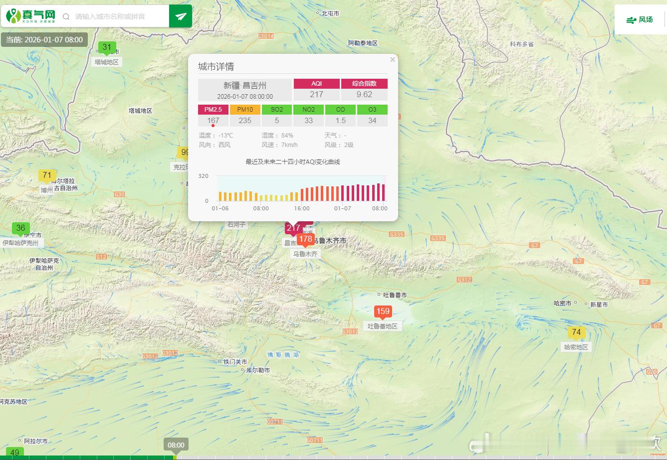 【雾 霾 沙尘】今晨在新疆、云南、四川、 重庆、贵州、广西、湖南、湖北等地出现大雾,总体范围不大,但个别单点的能见度低。8时能见度:新疆吉木萨尔42米出现特强浓雾;云南太华山64米、重庆开州90米、湖北荆州92米、广西天峨101米、湖南隆回102米、四川渠县102米、贵州锦屏129米,均出现强浓雾。从昨晚到今晨空气质量看,华东的霾和污染,总体随着西风东传,今晨临沂和连云港还有重污染,其他地区基本都转为优良。另外新疆天山南北两侧,也有污染堆积,有中度-重度污染,雾霾混杂。新疆在冬季有积雪的情况下,一旦高空回暖,形成逆温,就容易形成雾霾混杂的天气。今后3天,霾应该不多。但冷空气活动导致的大风,可能在内蒙古西部引发沙尘。如果后续起沙明显,沙尘还可能随着西北风向陕西山西京津冀一带扩散。但如果起沙不及预期,沙尘就不会形成远距离传输。总之,9日是否波及京津冀,待定观察。