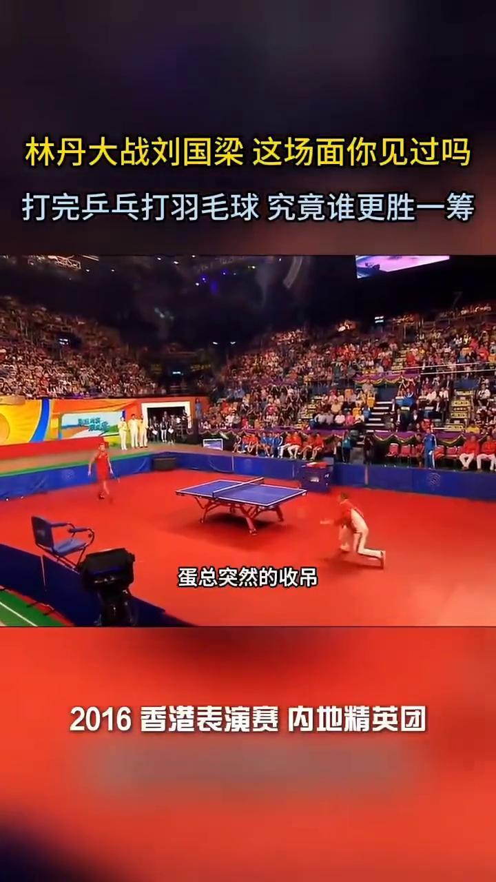林丹大战刘国梁这场面你见过吗? 林丹转身定睛一看竟然发现了个刘月半,他拿着林丹的专属武器显然是没搞清羽坛真神的实力。蛋总这个动作不仅犀利,而且逼出月半起球后就引拍蓄力,结果还是杀向了空气。刘月半一把甩掉乒乓球,极其潇洒的就要和蛋总拉高。 本是林丹的专项表演时刻,却被胖子的操作抢了风头,不仅高远球顶的十分到位,而且还能接下蛋总突然的收吊。林丹这边终于开始秀反手过渡,显得十分闲庭信步,可刘月半却也玩起了细腻,突然的滑板竟然羞了林丹一脸,果然打乒乓球必须要有800个心眼。