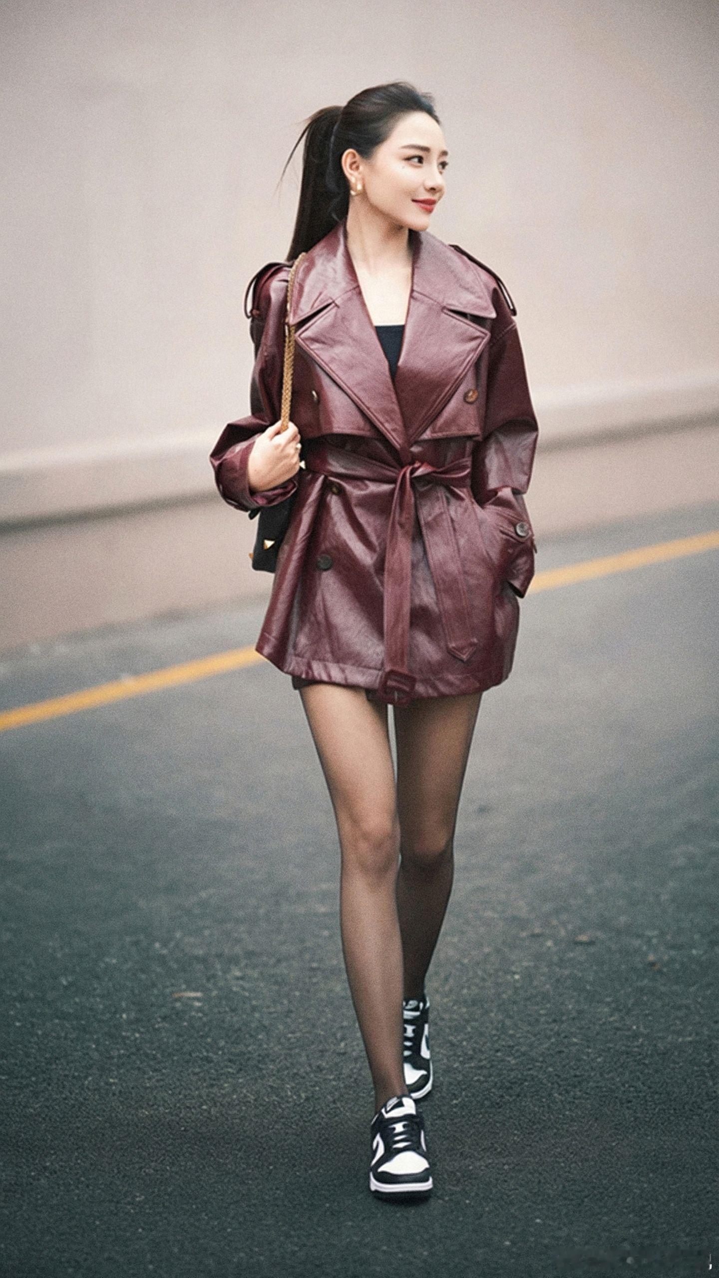 今天穿什么 红色夹克风绘梦长廊美女