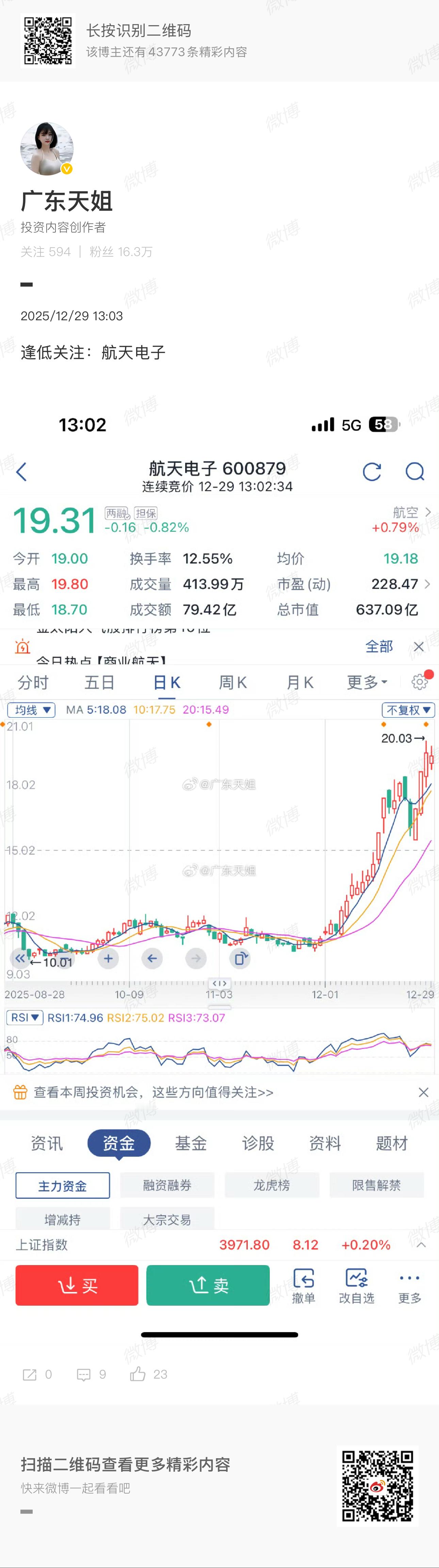 家人们,航天电子自天姐推荐后,到现在收益差不多有30%啦!真心恭喜那些关注直播且抓住机会的粉丝朋友们!要是你们在选股上感觉迷茫,不清楚怎么挑选优质标的,随时私信天姐。天姐愿意带着大家一起,在投资路上共创佳绩。不过最近天姐发现,大家点赞和评论都不太积极呀,这让天姐有点小失落。所以从明天起,天姐就不在微博分享这些内容了,之后只在V+和内圈分享。希望大家理解,也期待在新的地方和大家继续交流投资经验~
