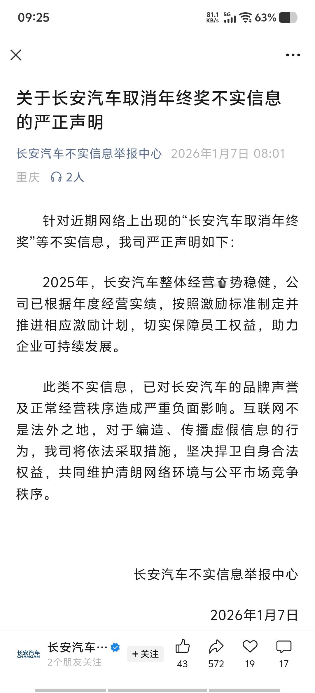 取消年终奖,后果很严重。问题是,长安汽车取消年终奖,不属实。别瞎嚷嚷了,听官方的话!百家车坛
