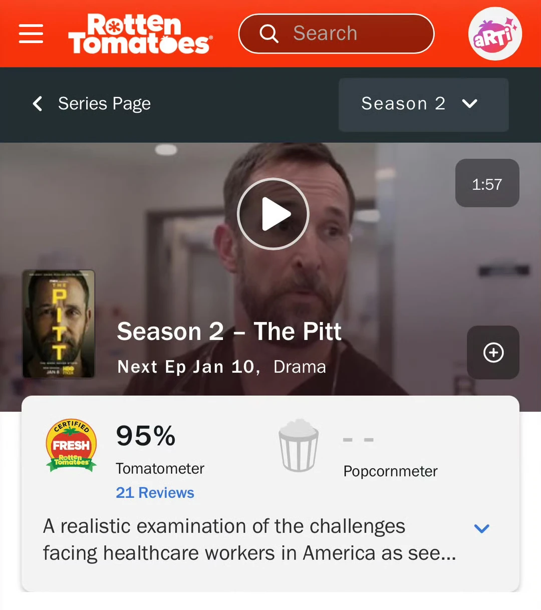 💥 目前第二季口碑已经出炉,依然是口碑爆棚,烂番茄新鲜度95%,均分高达8.6,剧评人称赞“这部剧再次证明,凭借其强大的演员阵容、紧凑的剧情和令人难以置信的真实感,它已成为电视剧史上最紧张、最有影响力的医疗剧之一。”