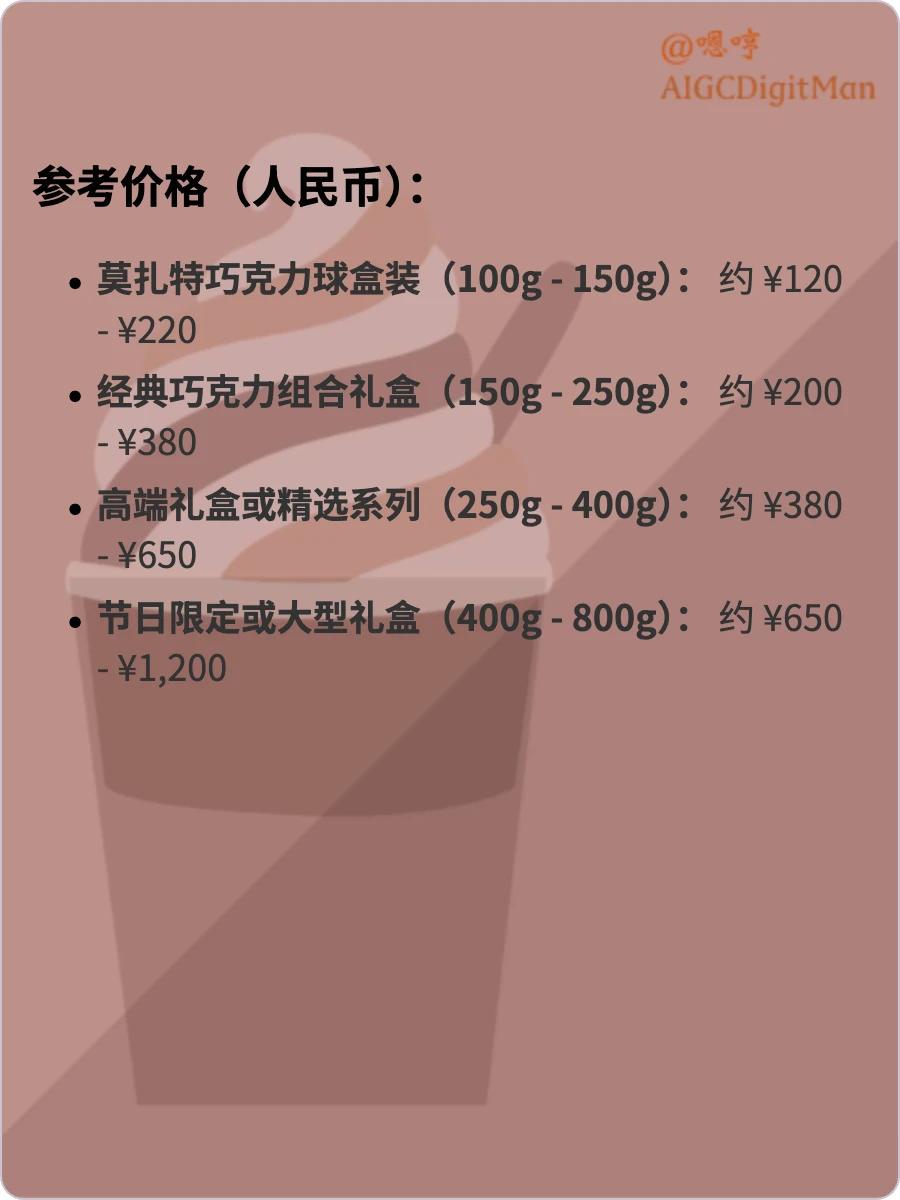 莫扎特巧克力球盒装(100g - 150g): 约 ¥120 - ¥220