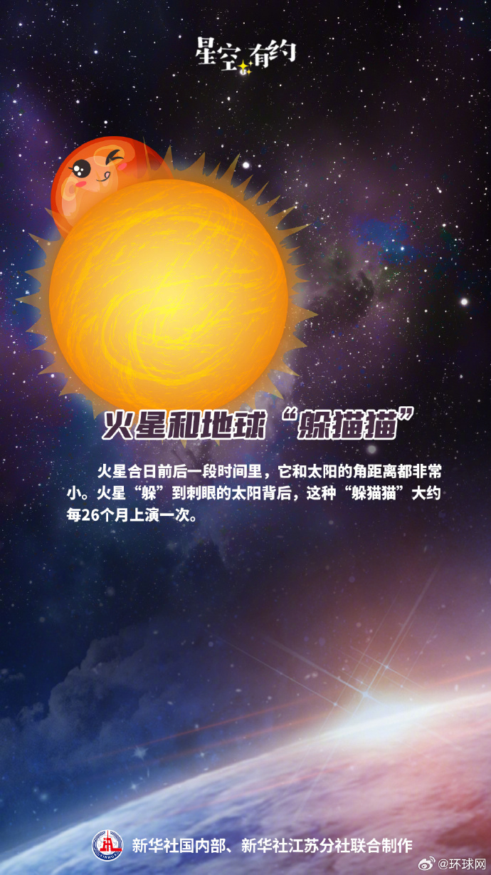 #火星将短暂失联#【9日合日!这期间火星将短暂“失联”】1月9日将迎来火星合日。届时,地球和火星分别运行到太阳两侧,三者几乎成一条直线,火星将短暂“失联”。这一阶段火星和地球距离很远,约为3.595亿公里,约合2.403个天文单位。“天文学上,火星合日指的是火星和太阳地心视黄经相同的时刻。在这前后一段时间里,火星和太阳的角距离都非常小。火星‘躲’到刺眼的太阳背后,我们无法观测。”中国科学院紫金山天文台科普主管王科超说,与火星冲日一样,火星合日也大约每26个月发生一次,这是由地球和火星的相对公转周期决定的。火星合日前后,火星将与地球“失联”一段时间,因而火星合日在航天领域备受关注。“地球与火星上探测器的通信依赖无线电。作为一个强大的全波段辐射源,太阳发射的无线电信号,要比火星探测器发送的无线电信号强很多。火星合日前后,火星和太阳处于同一方向且角距离很近,火星和地球间的通信受太阳强烈干扰,导致‘失联’。”王科超说。由于太阳辐射干扰等可能导致传送指令丢失、扰乱探测器任务,各国科学家们会在火星合日前后暂停向火星上的探测器发送新指令。美国国家航空航天局官方网站发布,从当地时间2025年12月29日至2026年1月16日,将无法与火星探测器保持联系。“不用担心,‘失联’期不长,仅持续火星合日的前后几周,这是宇宙为繁忙的探测器们安排的一次‘太空年假’。”王科超介绍,等到1月中下旬,火星会慢慢从太阳背后探出“头”来,通信也将逐渐变好。(新华社)