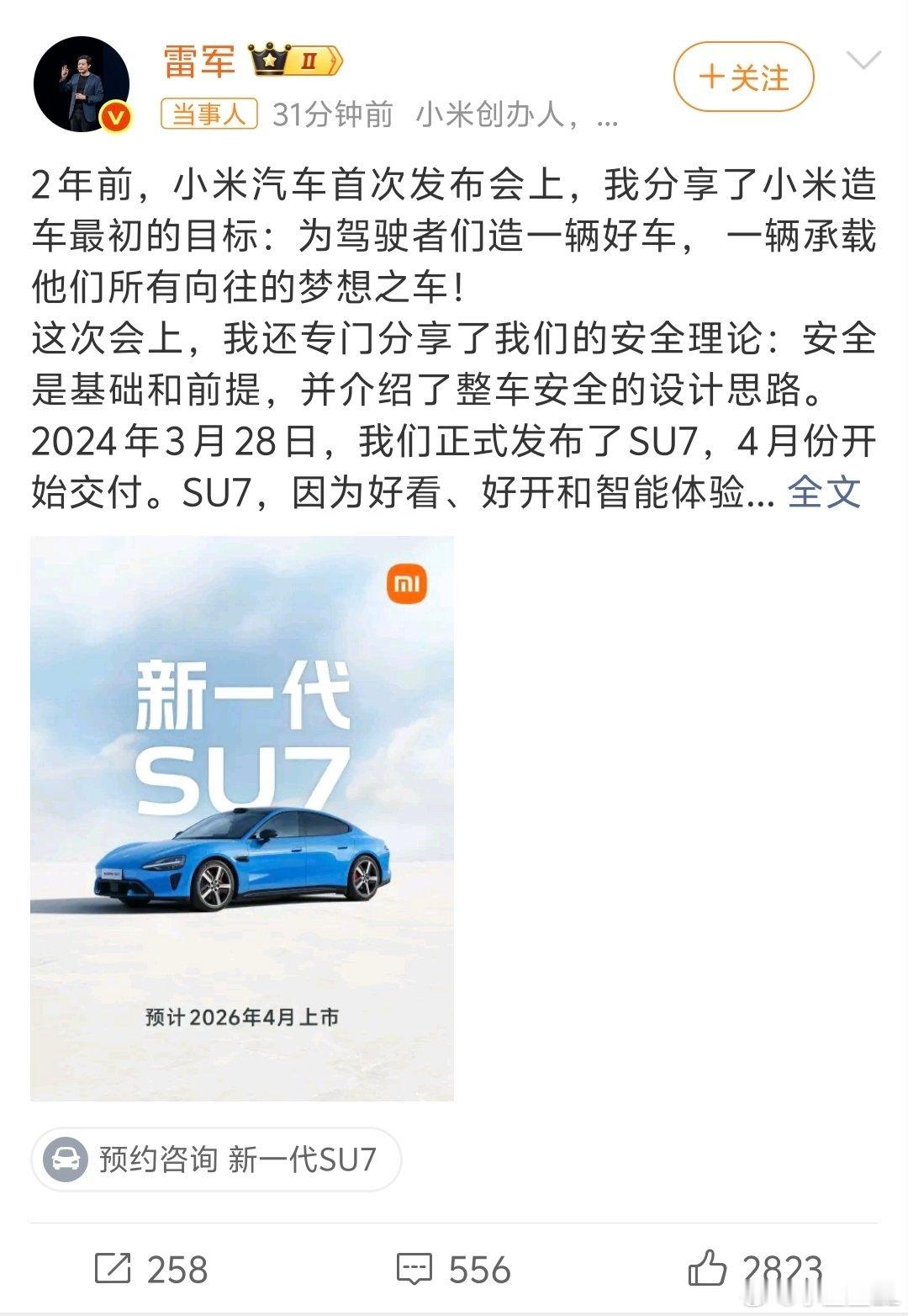 今天正式释放了新一代SU7信息。对于太多小米车主,尤其女性,她们最在意的就是