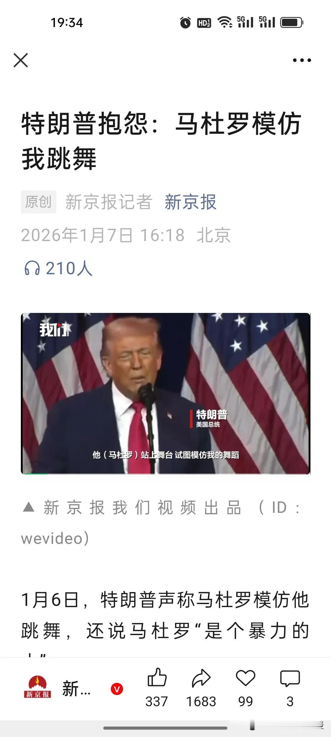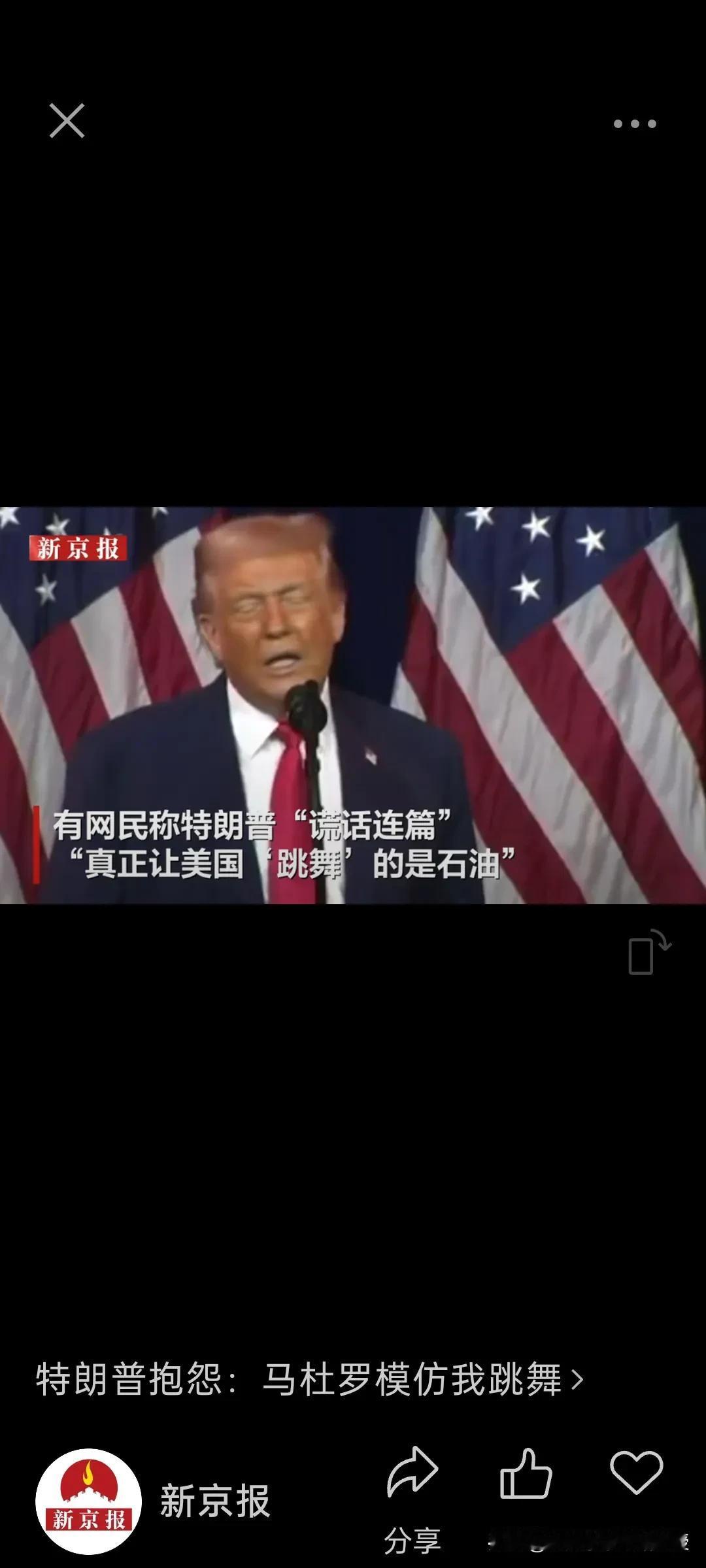 模仿舞步就是要被打!根据《青蜂侠》视频,特朗普今天在华盛顿说出了一番心里话,他指出马杜罗模仿他的舞步,原来模仿特朗普跳舞也是有罪的。 之前美媒报道,特朗普团队认为马杜罗跳舞是嘲弄美国,因此决定实施军事打击。 其实,哪里是舞步惹怒了特朗普,分明就是石油的诱惑太大,所谓“模仿舞步即有罪”不过是特朗普自导自演的霸权戏码,当3030亿桶价值18万亿的石油储量诱惑摆在眼前,所谓“嘲弄美国”的指控不过是掩盖能源掠夺野心的遮羞布!