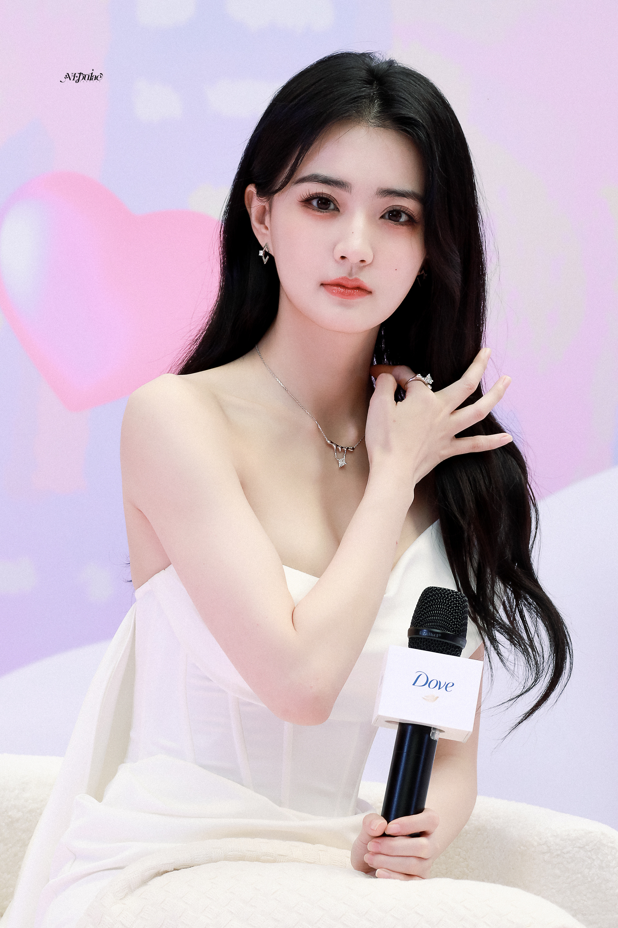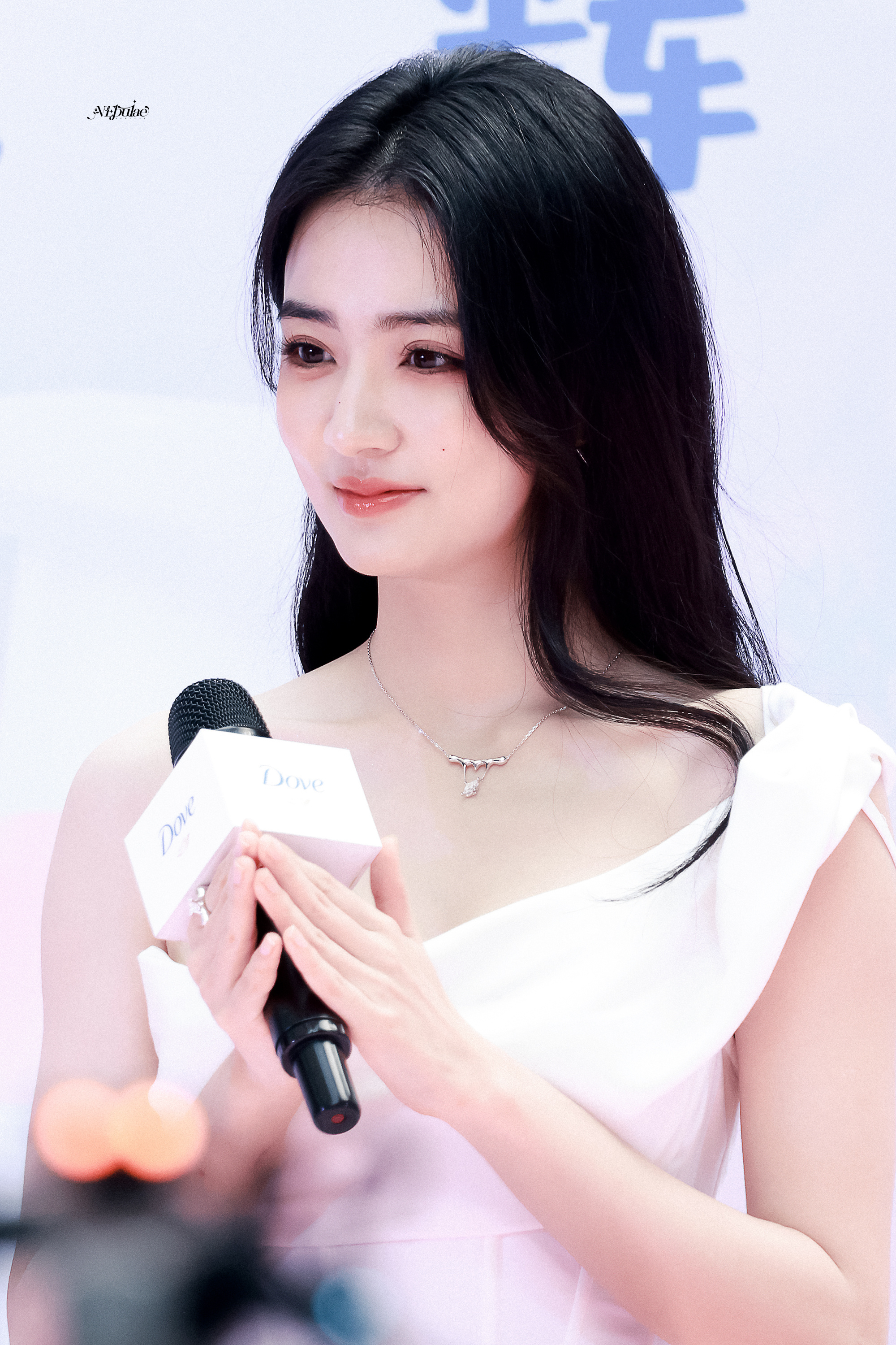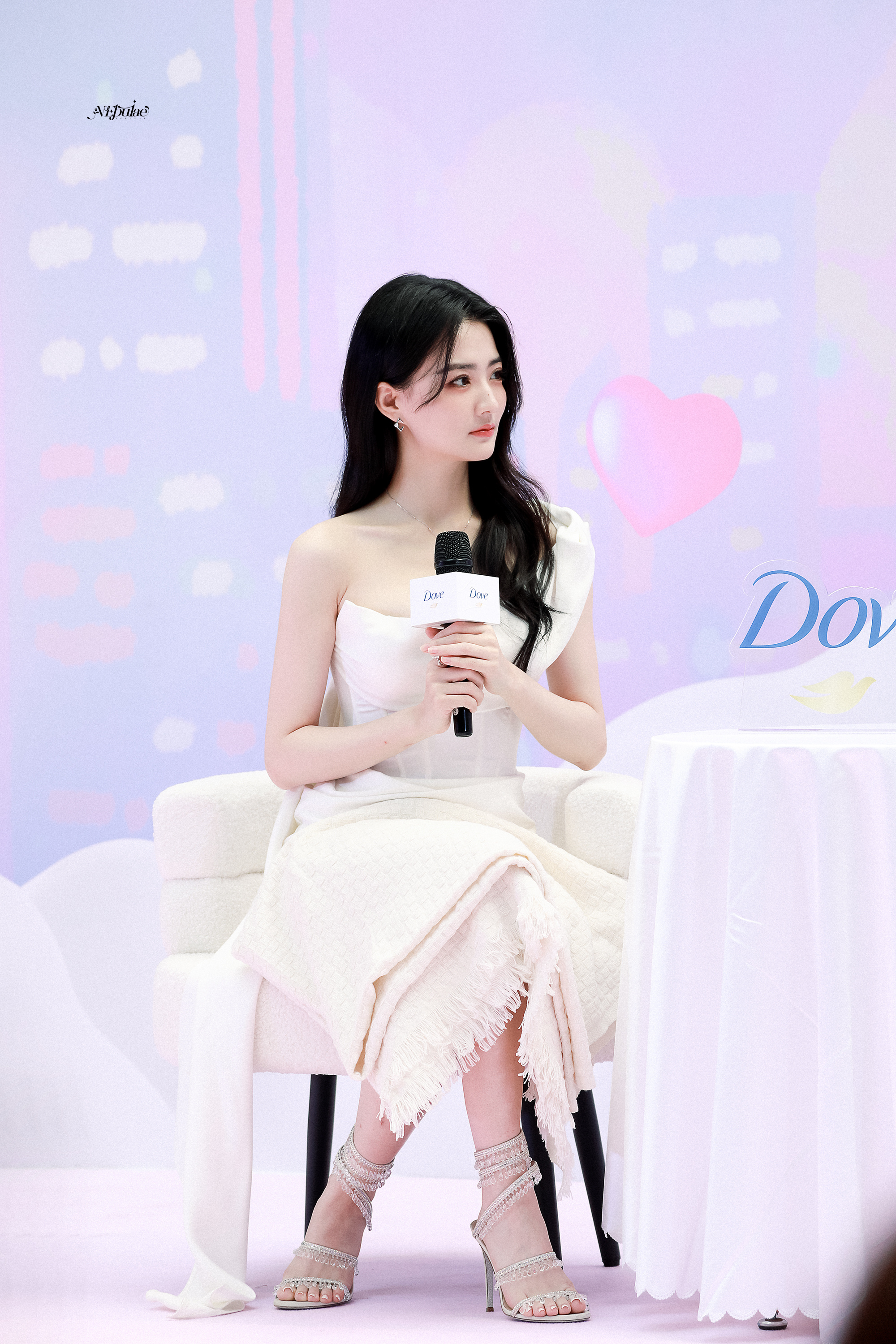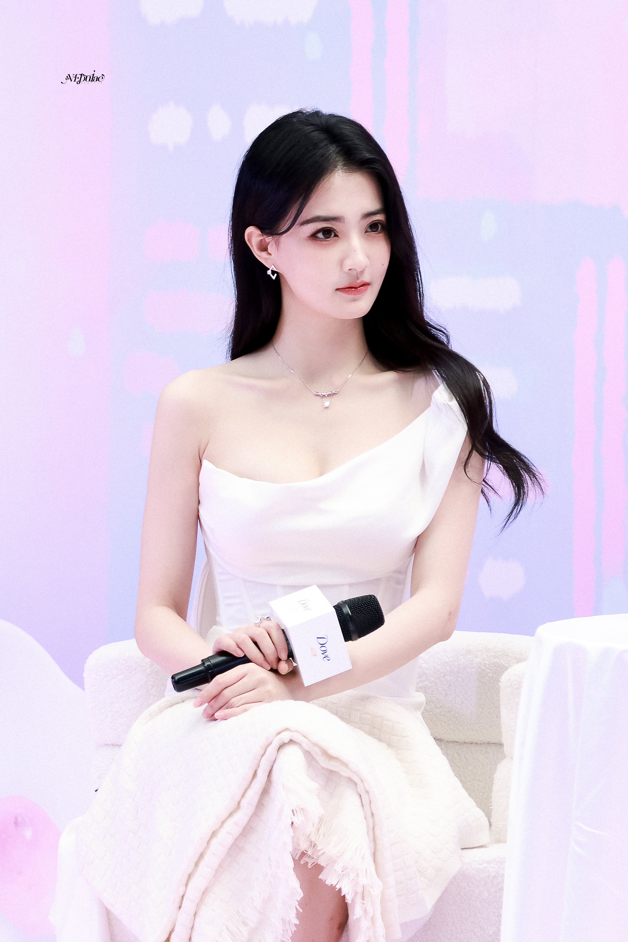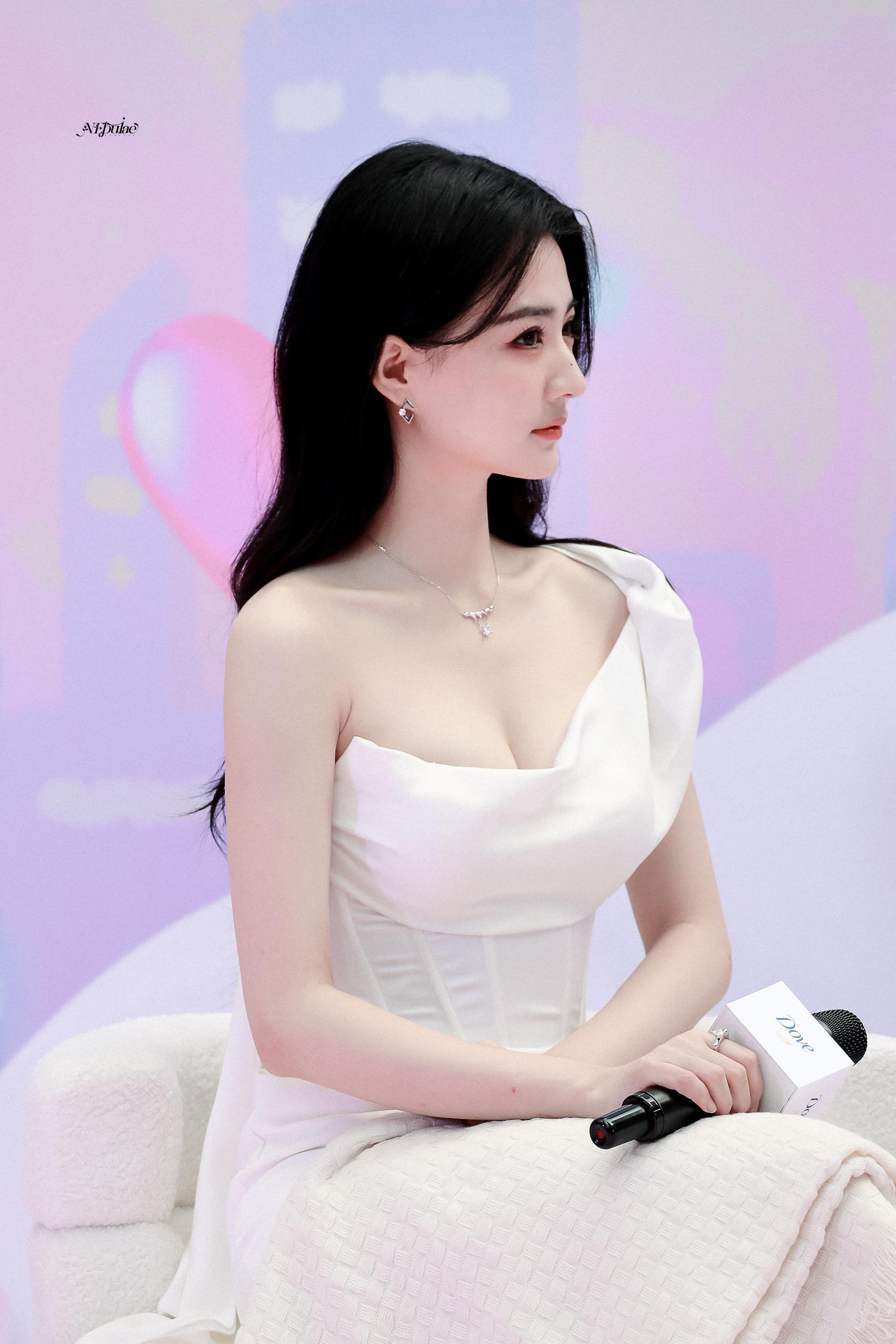 徐璐 白缎斜肩裙勾勒出柔美的曲线,锁骨链轻缀颈间添了几分娇俏,玉足踩着钻带高跟,红唇凝脂间眼波低垂,温柔里藏着媚意。