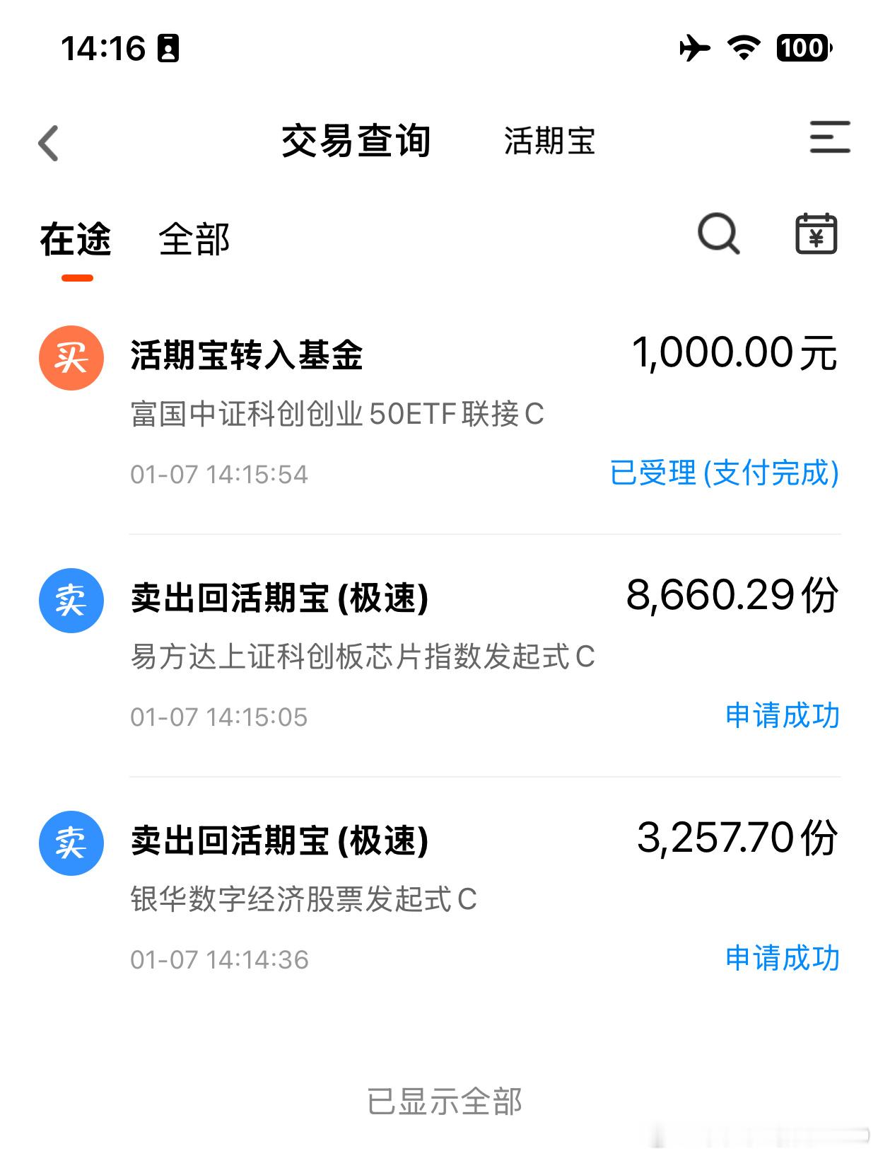 午评:14连阳有希望!别慌,红包行情还在市场创纪录走出13连阳后,今天14连阳在红绿之间徘徊,下午拉起来了一些,估计谜底要到收盘那一刻才能揭晓了。不过无论收盘结果如何,都不能改变慢牛长牛的趋势,跨年红包行情还在,调整一下,让想上车的人上车,下车的下车,后续反而能走的更健康。从方向上看,还是有色化工等周期方向表现不错,芯片半导体板块也不错,半导体设备领涨,大逻辑是国产替代,设备公司是卖铲子的,无论何时技术突破,对设备的需求只会多不会少,而且要求越来越高,加上当前有科技界的春晚CES电子展在举办,有持续的利好催化。AI方向稍作休息,但也有机会。商业航天昨天炒作的公司批量发公告给炒作降温,今天顺势下跌,我认为这波行情暂时结束了,等调整企稳后,我会开启定投,等待新一轮机会,现在还没到时候。当前推荐至少8成仓位,激进的可以满仓,左手科技,右手有色化工。今日定投1000元富国科创创业50指数(013314),这是覆盖科创板和创业板的宽基指数,就是最符合本轮行情的宽基指数,如果本轮行情只买一个指数,我推荐这一只。所以我会长期定投,目前已经小有盈利。分批买入,坚定持有。今日逢高止盈1/4的易方达科创芯片,止盈1/3的银华数字经济,银华这只基金不错的,近期调仓了,不止盈也可以继续拿着。商业航天板块持续暴涨创业板指数微博股票