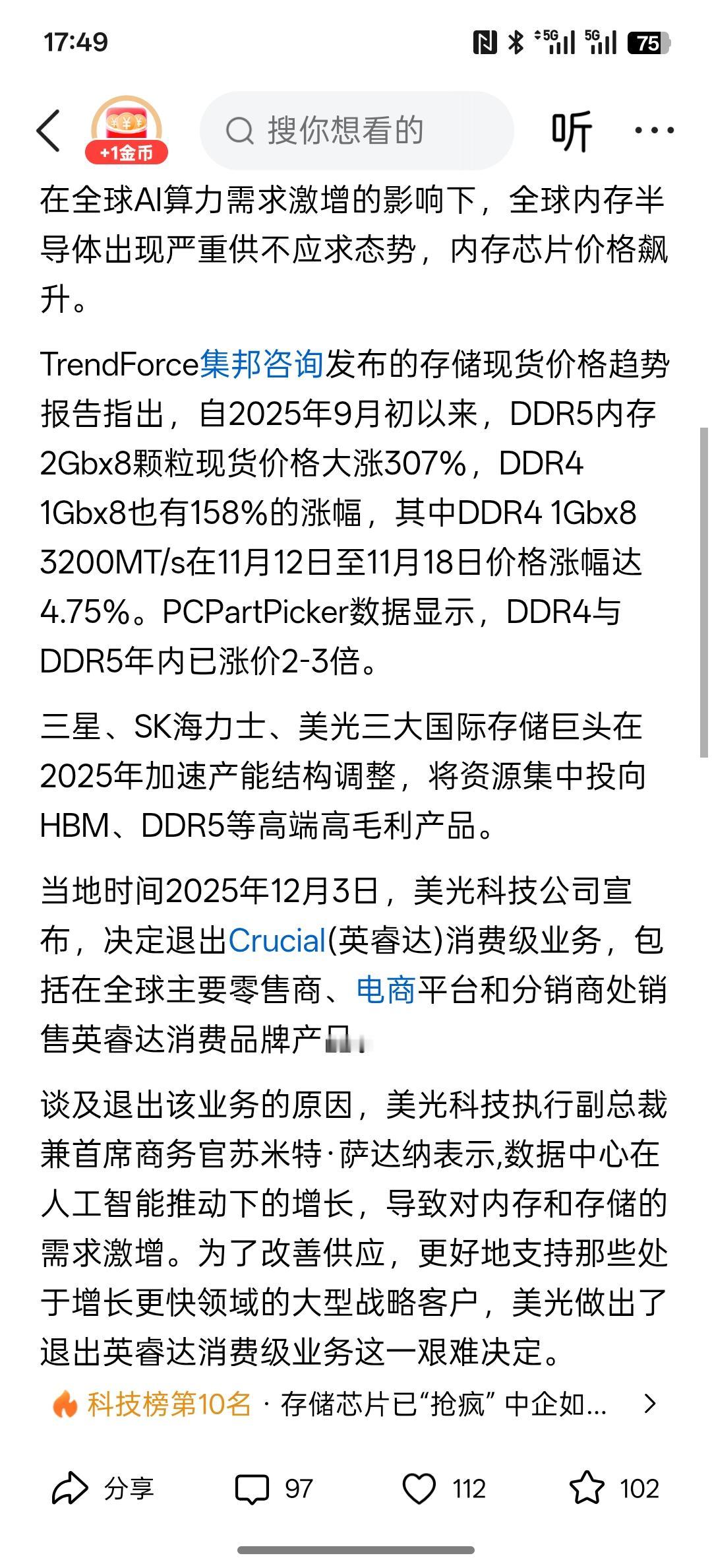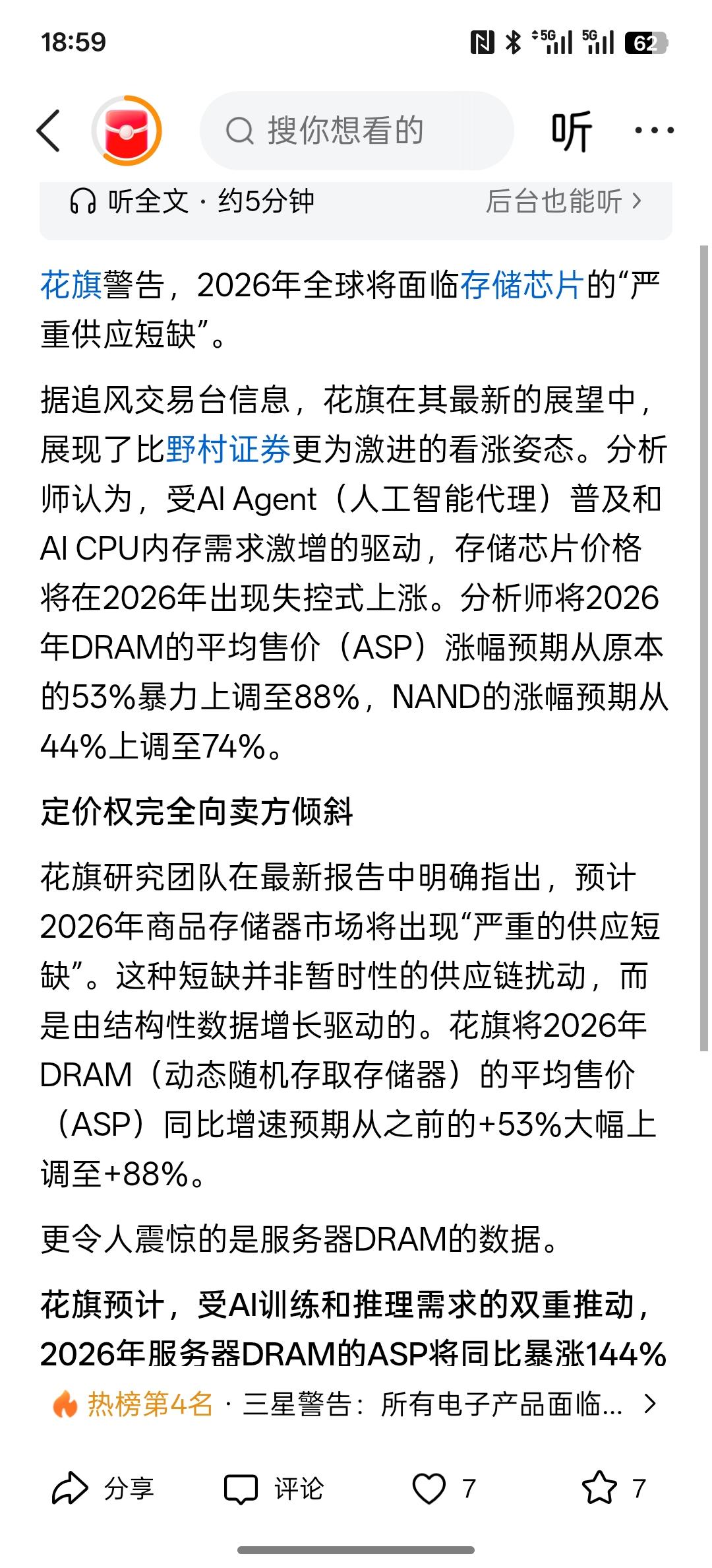 芯片还得涨啊,存储芯片价格失控!华尔街再调预期:2026年DRAM或暴涨88%,NAND涨74%,现在因为AI人工智能的发展以及AI人工智能的训练,包括AI人工智能的推理训练以及算力中心,包括数据中心的建设,显然是吸收了全球大量的存储芯片!当前中国国内也在大力推动工业升级改造,中国也在大力的建造智算中心,包括超算中心!那么,对于内存以及存储芯片都有大量的需求,价格2026年会继续上涨!需求摆在这里,货源紧张!上涨是必然的。 现在的内存条价格直接涨到50000块钱一套了!这样的价格涨上去,可能还会延续上涨!估计手机价格都还会上涨!
